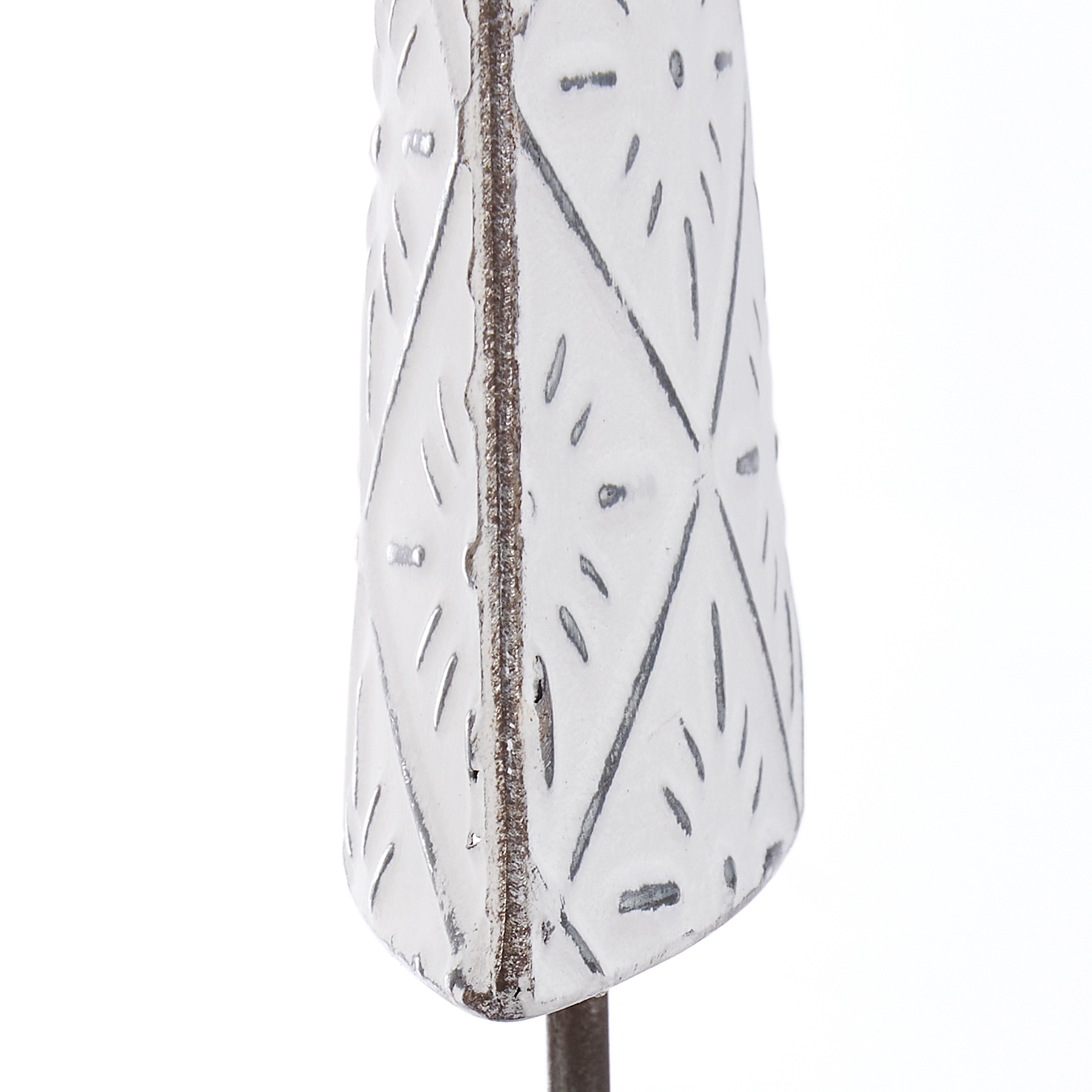 A metal and wood sitter from our Christmas Collection displaying a textured Christmas tree. The star tree sitter features wood base and embossed dark metal with a brush of white to accent star pattern. Free-stands alone on flat surface.
