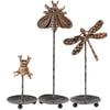 A set of 3 decorative sitters from our Vintage Collection featuring various insect designs made in an antique metal style. Sitter set includes a beetle, dragonfly and moth standing at different heights on a brushed metal stake and base. Our Insect sitters are designed to free-stand on any flat surface. A set of dark academia inspired home accents perfect for everyday display.