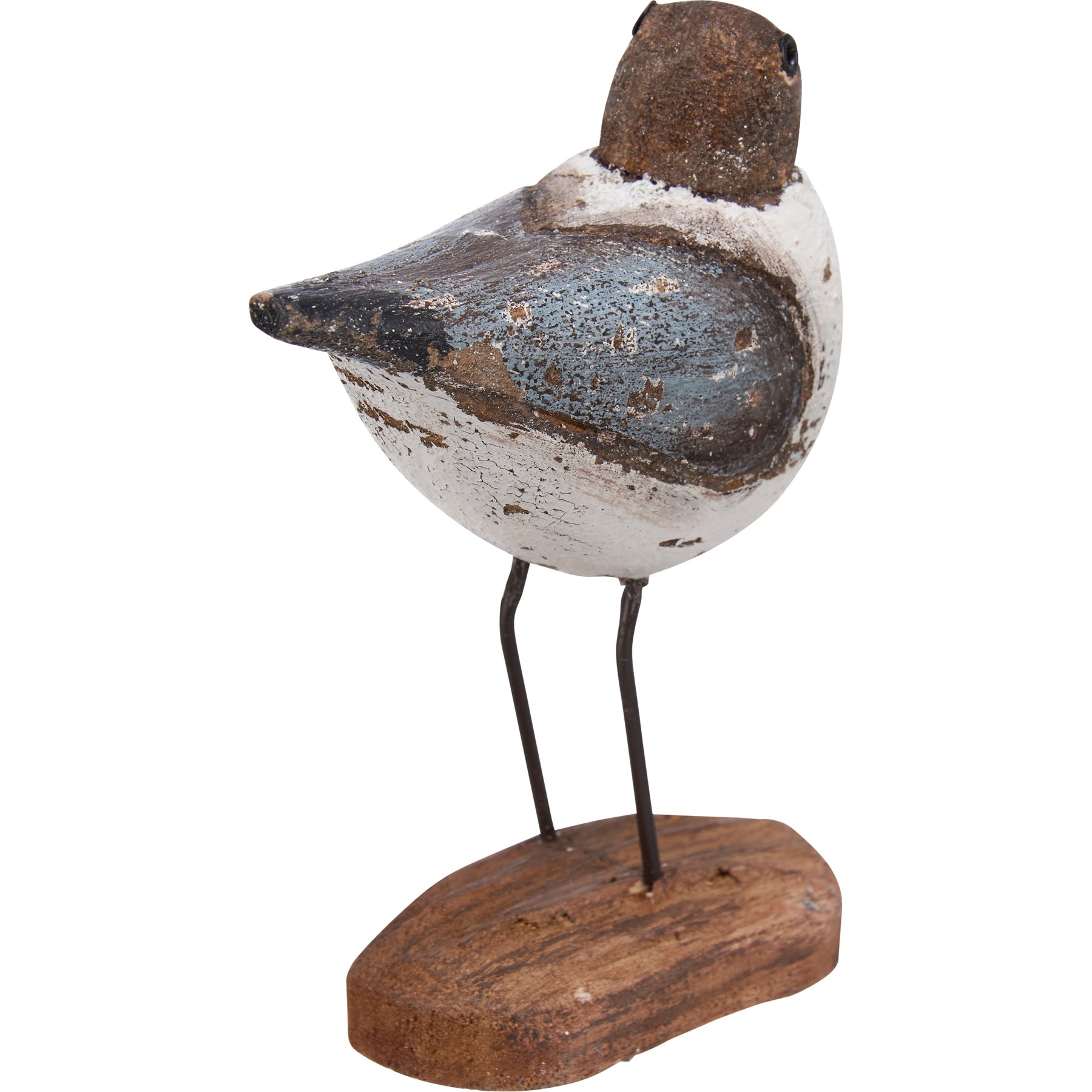 A small decorative sitter from our Beach Collection featuring a sandpiper bird design made of natural wood with distressed details. Bird stands on driftwood style base. Our Sandpiper small sitter is designed to free-stand on any flat surface. A primitive option for beach-themed everyday home décor.