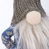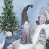A fabric and felt sitter from our Christmas Collection displaying a gray winter gnome. Design features a stuffed gnome wearing knit winter clothes and holding a wood cutout of a tree. Gnome also features snowy detail on tree. Perfect to display on its own or with coordinating gnome displays. Our Standing Gray Gnome sitter is designed to free-stand on any flat surface. Decorative item only and are not intended for child or infant use. A charming seasonal home accent with a variety of display options.