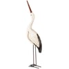 A decorative stork from our Beach Collection displaying a driftwood inspired design made of natural wood with painted accents and distressed details. Decorative stork features aged metal accents and sits on metal stakes resembling bird legs. Our Stork sitter is designed to free-stand on any flat surface making it easy to display. A rustic beach-themed home accent that coordinates well with primitive home décor.