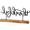 A decorative sitter from our Fall & Harvest Collection featuring a metal sign boasting an inspirational word standing on a natural wood base. Hand lettered "Thankful" sentiment is perfect for everyday and seasonal use. Our Thankful sign can free-stand alone.
