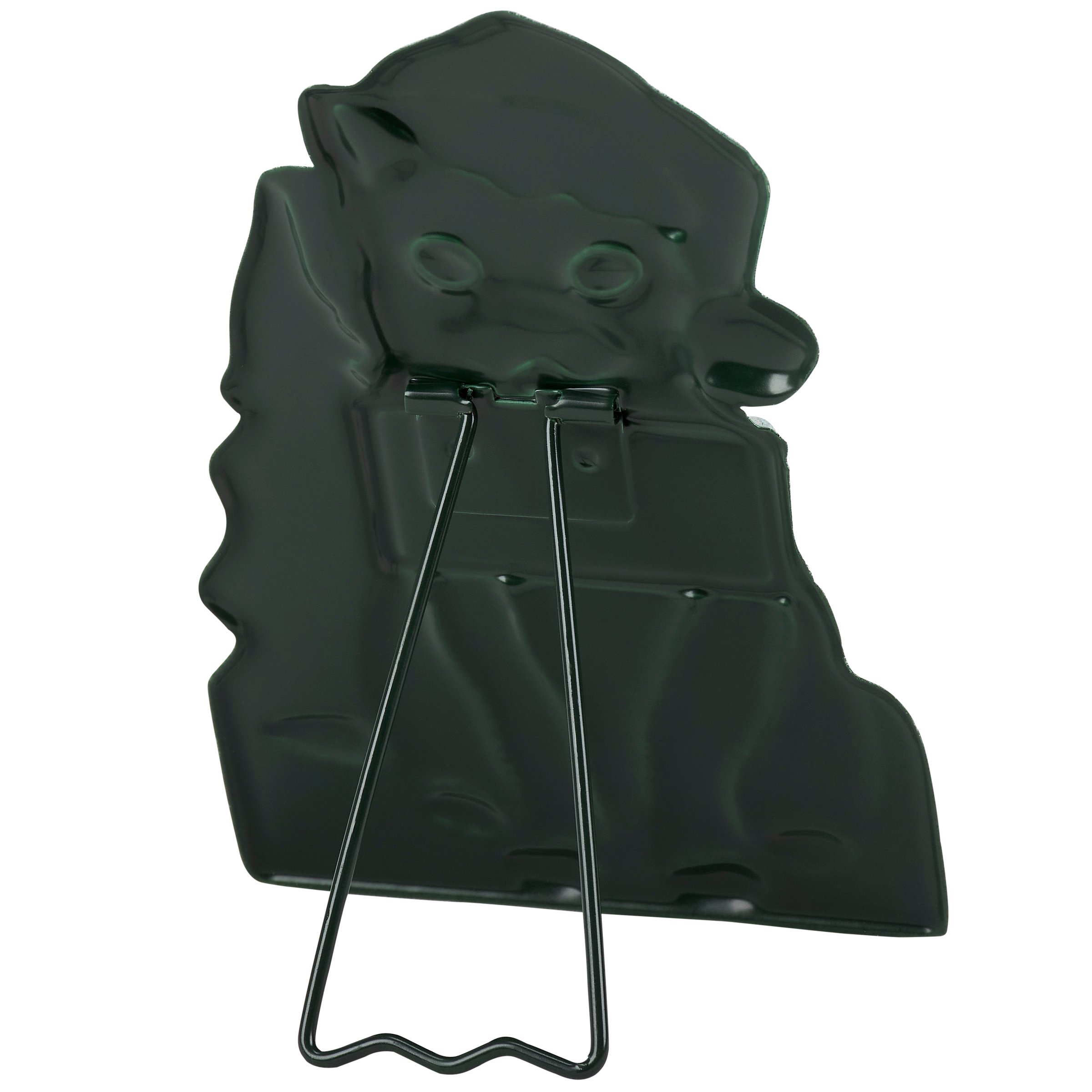 A metal sitter from our Holiday Pet Collection featuring a cutout design displaying a charming winter scene of a tuxedo cat wearing a Santa hat and holding a sign that reads "Meowy Christmas" for a fun combination of a love for Christmas and pets. Christmas tuxedo cat design is replicated from original artwork painted onto burlap canvas, giving the art a unique depth and texture. This Christmas cat sitter features embossed and debossed details to accent the original hand painted art for added dimension. Our metal Tuxedo Cat Meowy Christmas sitter free stands on flat surface for display using easel on the back. A fun cat themed home accent that easily adds seasonal style to any home or work space.
