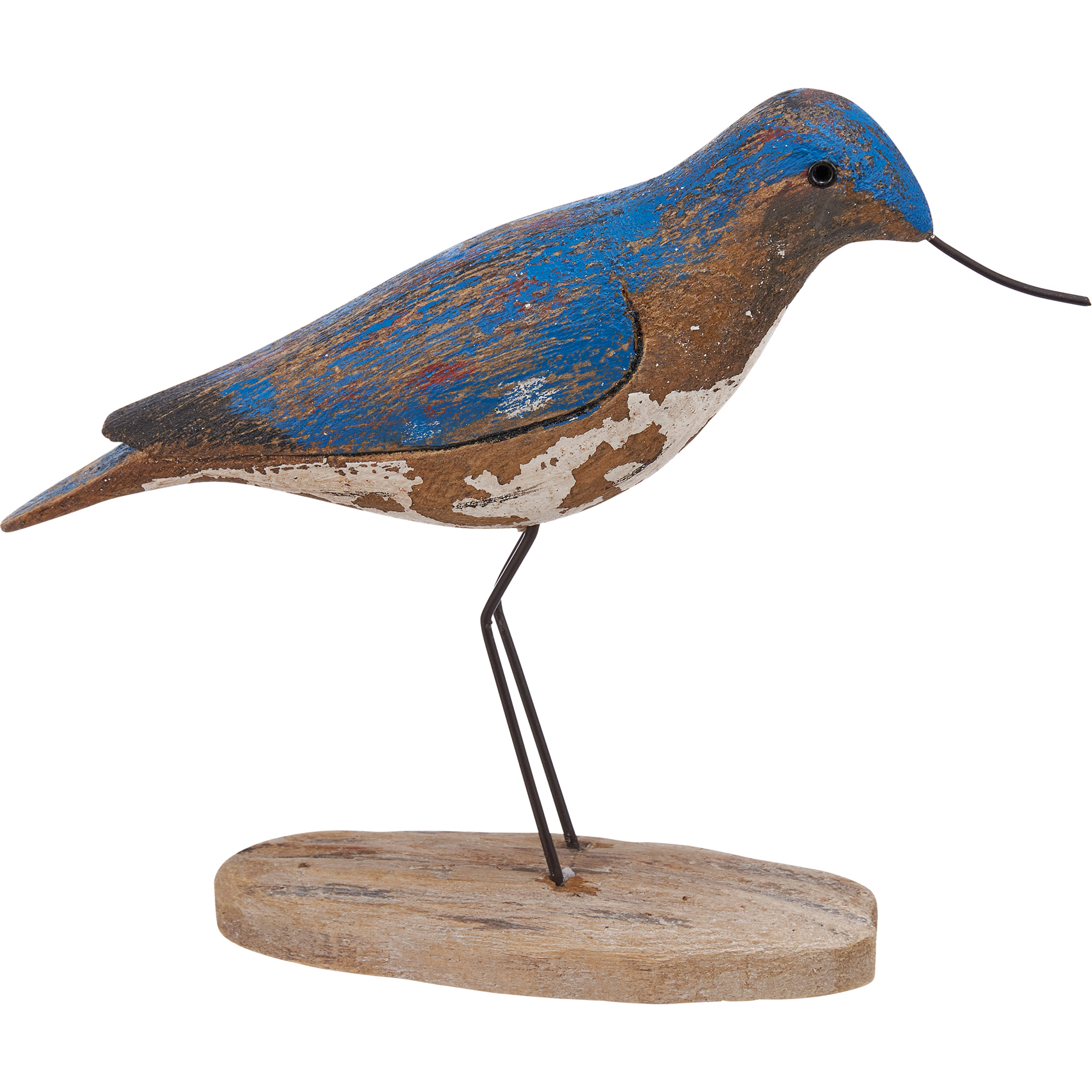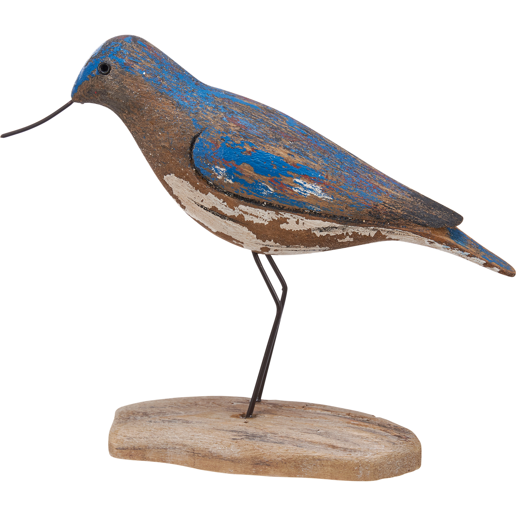 A decorative sitter from our Beach Collection featuring a willet bird design made of natural wood with distressed details. Bird stands on driftwood style base. Our Willet sitter is designed to free-stand on any flat surface. A primitive option for beach-themed everyday home décor.