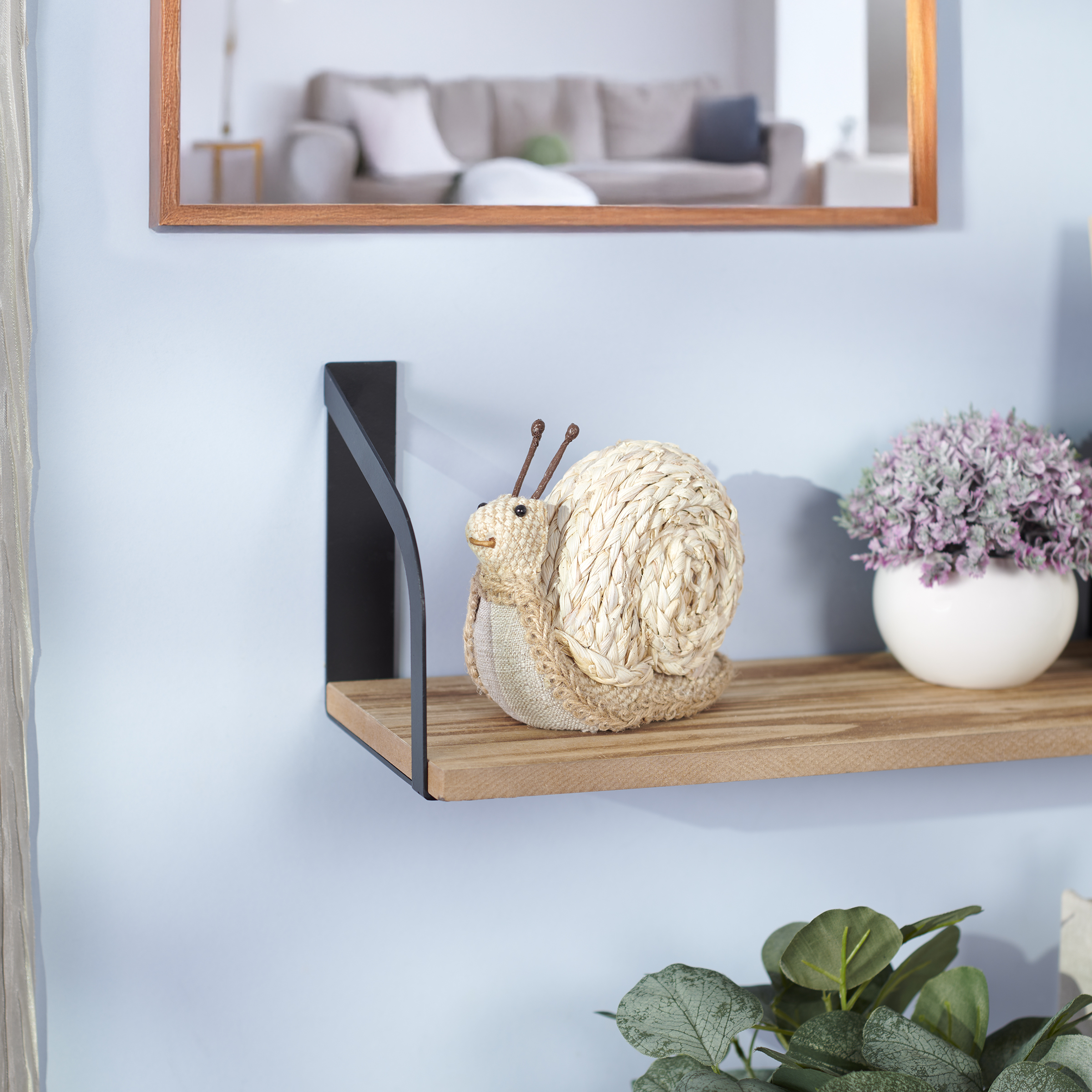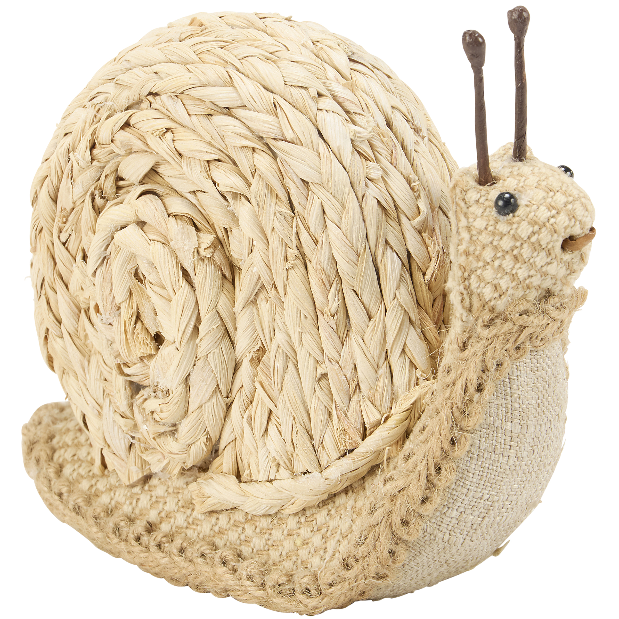 A decorative snail from our Cottagecore Collection displaying a unique handmade style design with woven jute and natural foliage. Our Woven Snail sitter is designed to free-stand on any flat surface making it easy to display. A garden-themed home accent that coordinates well with rustic home décor.