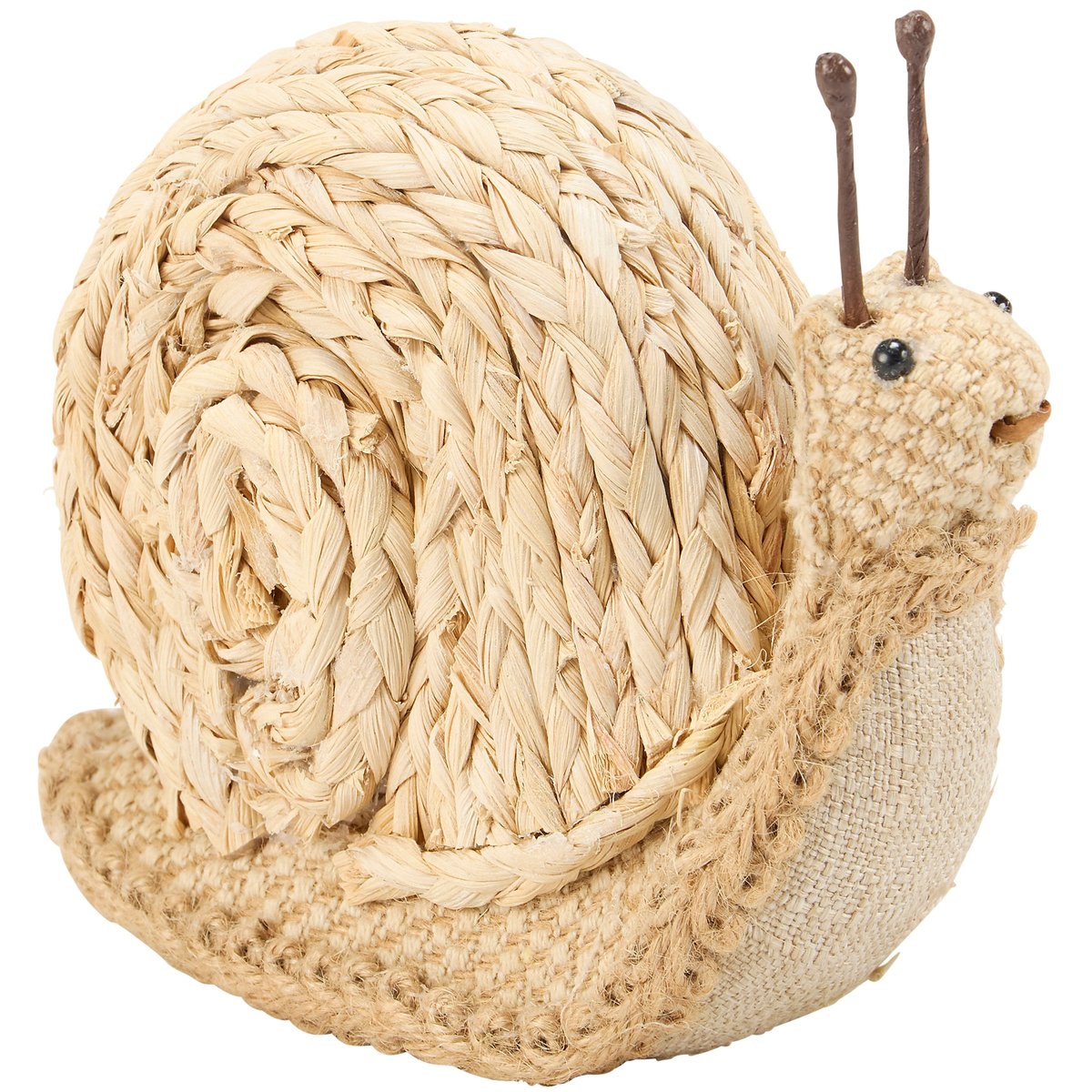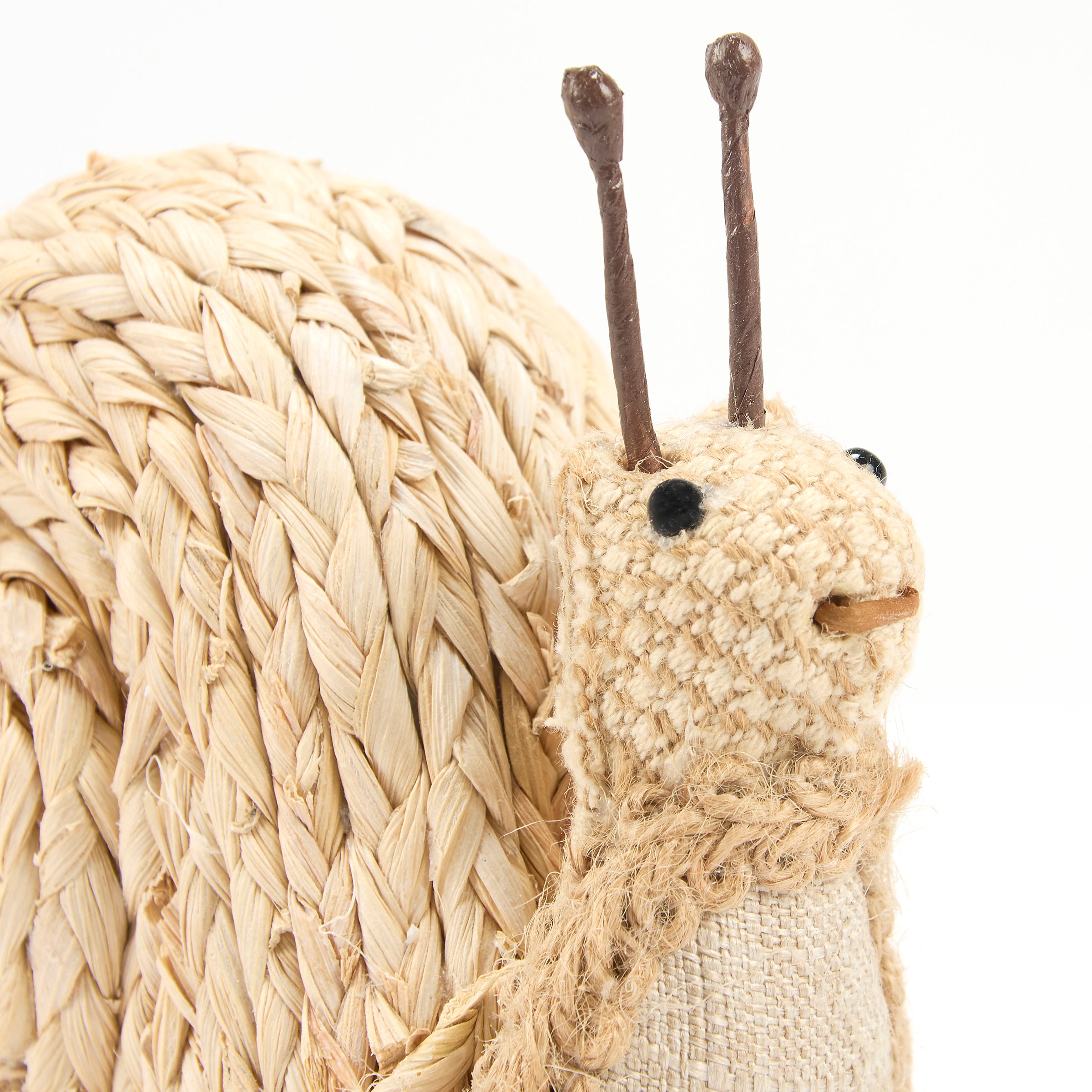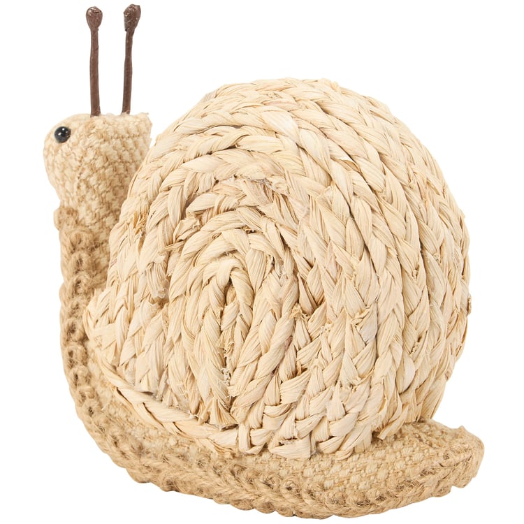 A decorative snail from our Cottagecore Collection displaying a unique handmade style design with woven jute and natural foliage. Our Woven Snail sitter is designed to free-stand on any flat surface making it easy to display. A garden-themed home accent that coordinates well with rustic home décor.