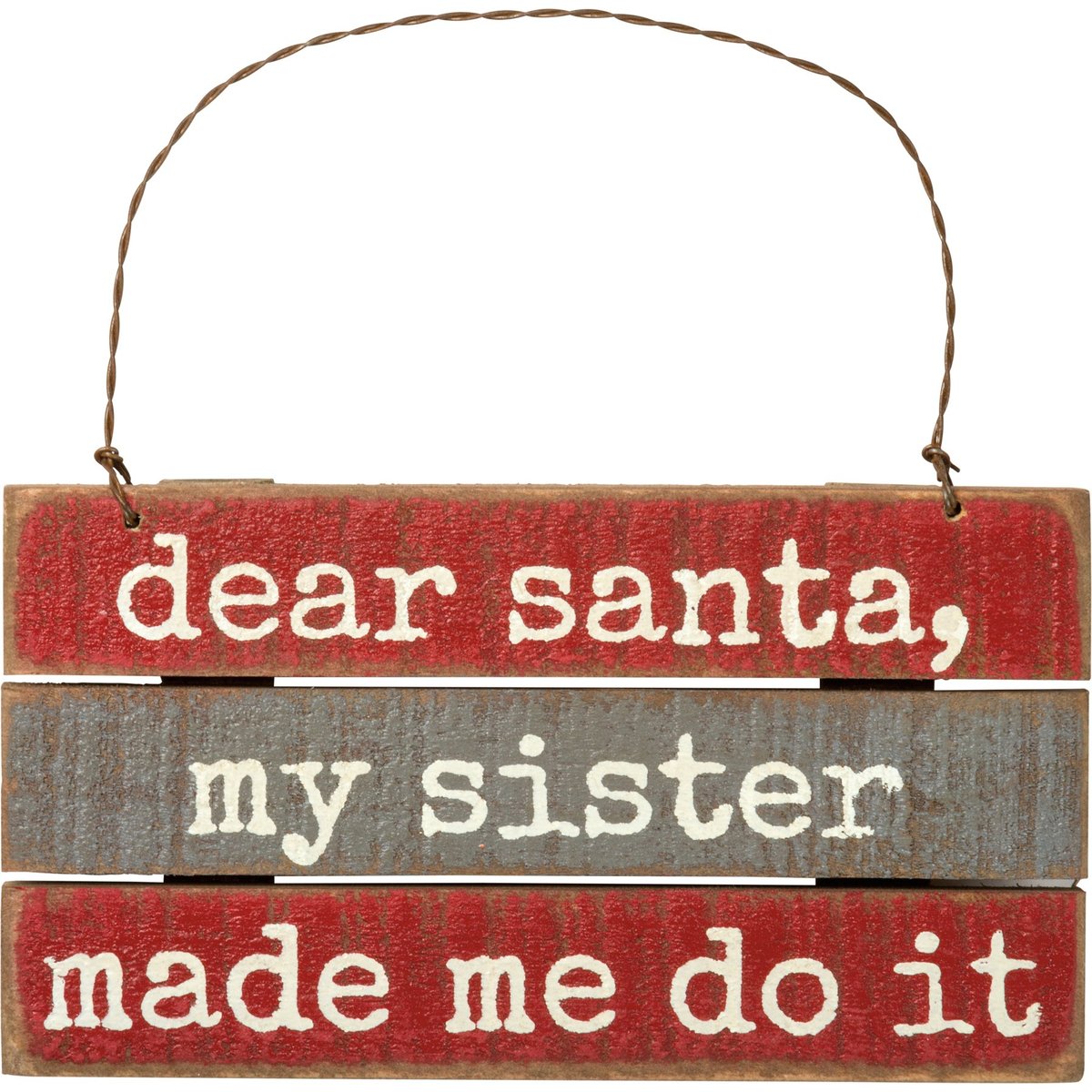 Dear Santa My Sister Made Me Do It Slat Ornament