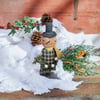 A primitive snowman doll from our Christmas Collection displaying a snowman wearing winter clothing and holding a festive garland. Seasonal doll is recreated from an original handmade piece using natural wood, fabric, and wire details. Our Cozy Collin doll is designed to free-stand on any flat surface for display. Contains small parts; this is not a toy. A rustic seasonal home accent to display alone or as a collection with other seasonal dolls.