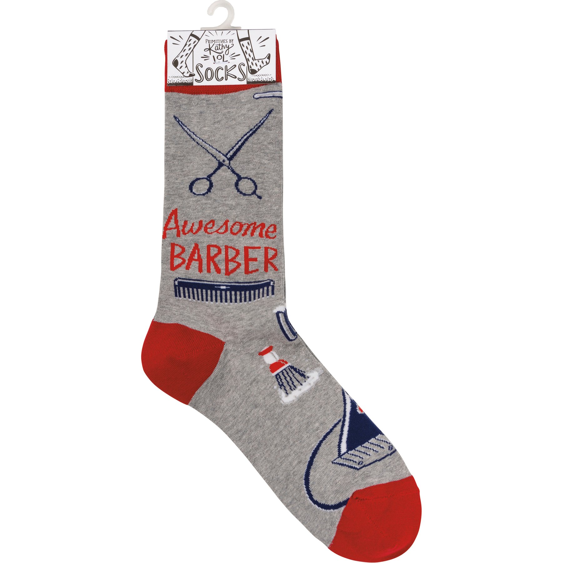 These colorful socks from our LOL Made You Smile Collection feature woven designs with coordinating "Awesome Barber" sentiment. Cotton, nylon, spandex. These awesome barber socks are one size fits most.