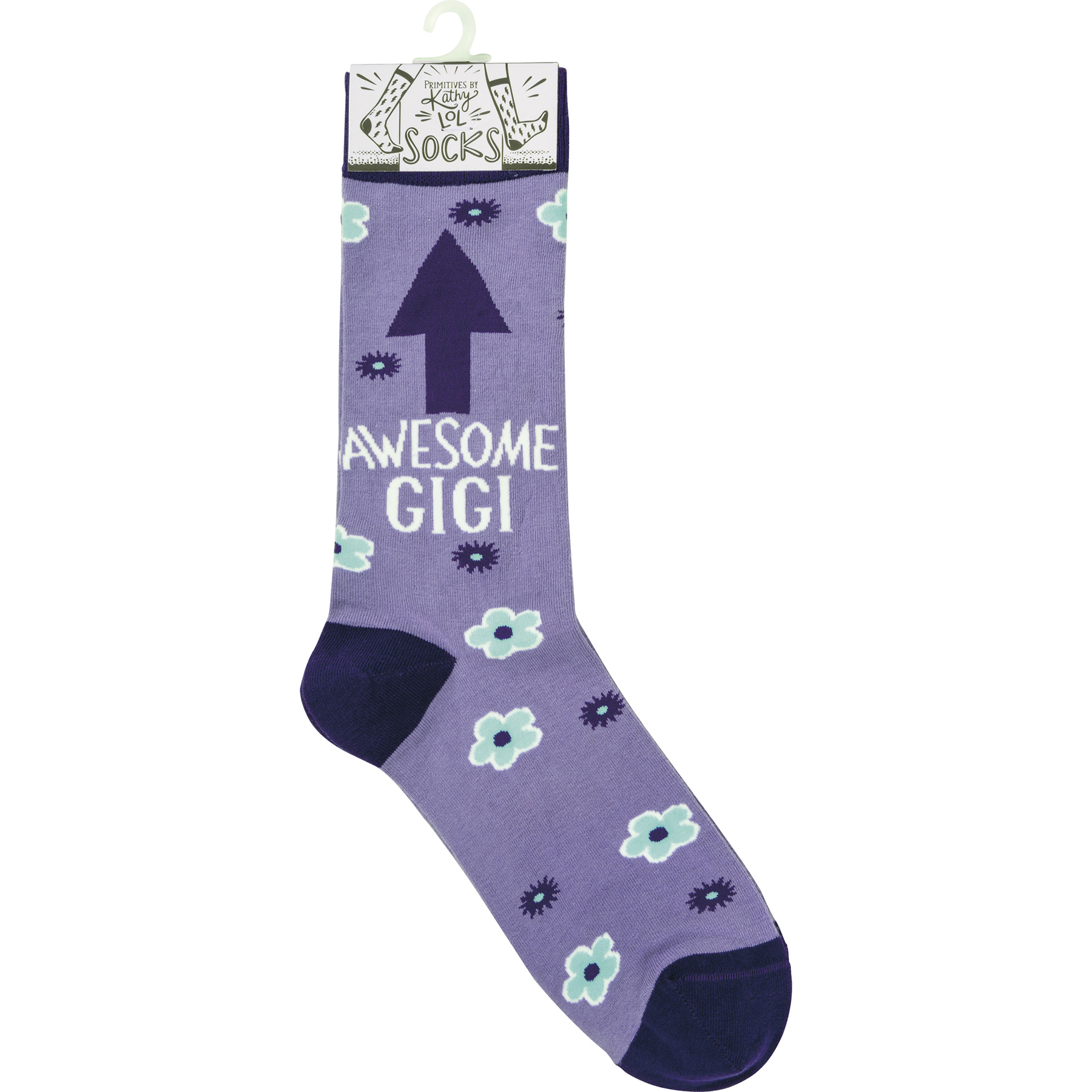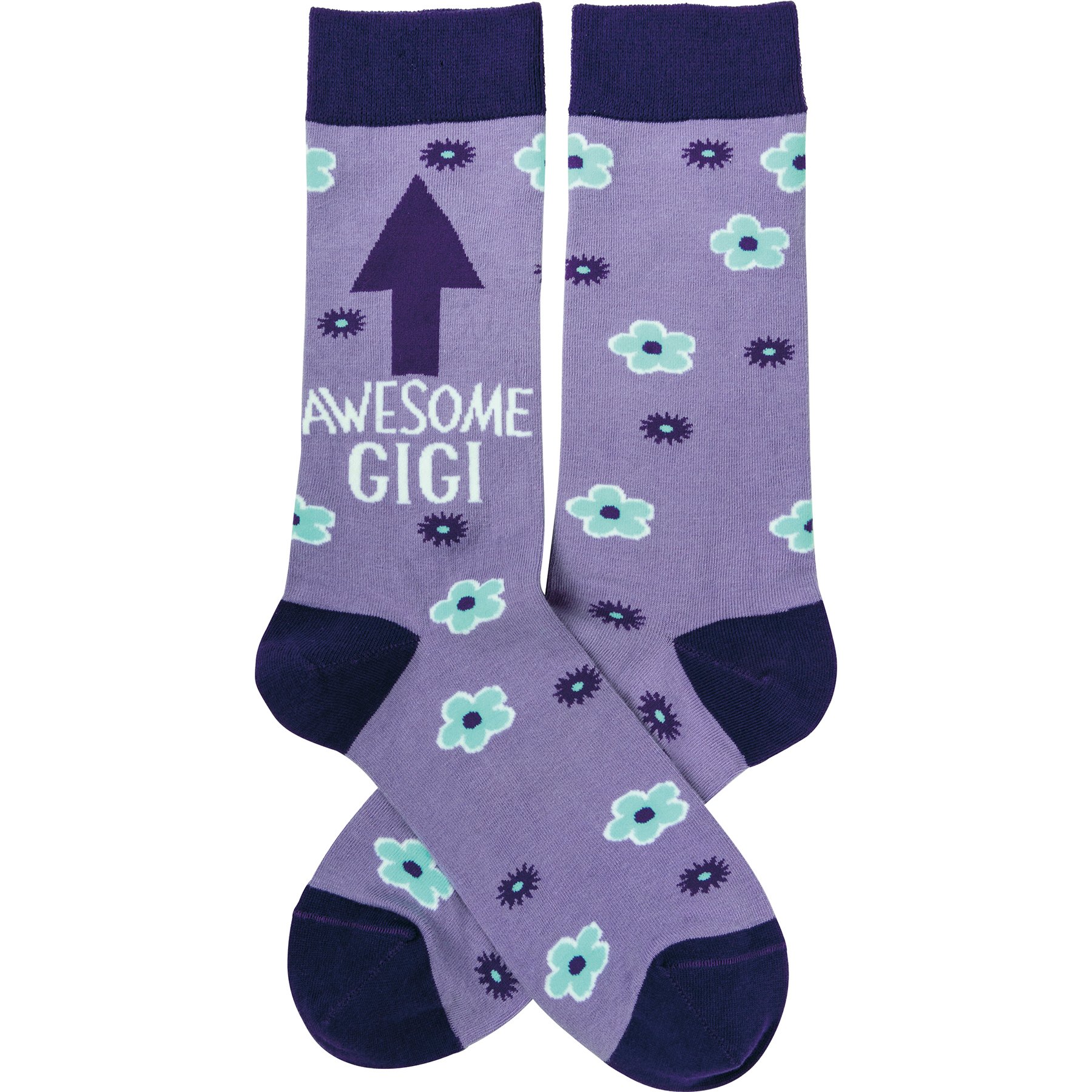 These colorful socks feature woven designs with coordinating "Awesome Gigi" sentiment. Cotton, nylon, spandex. One size fits most.