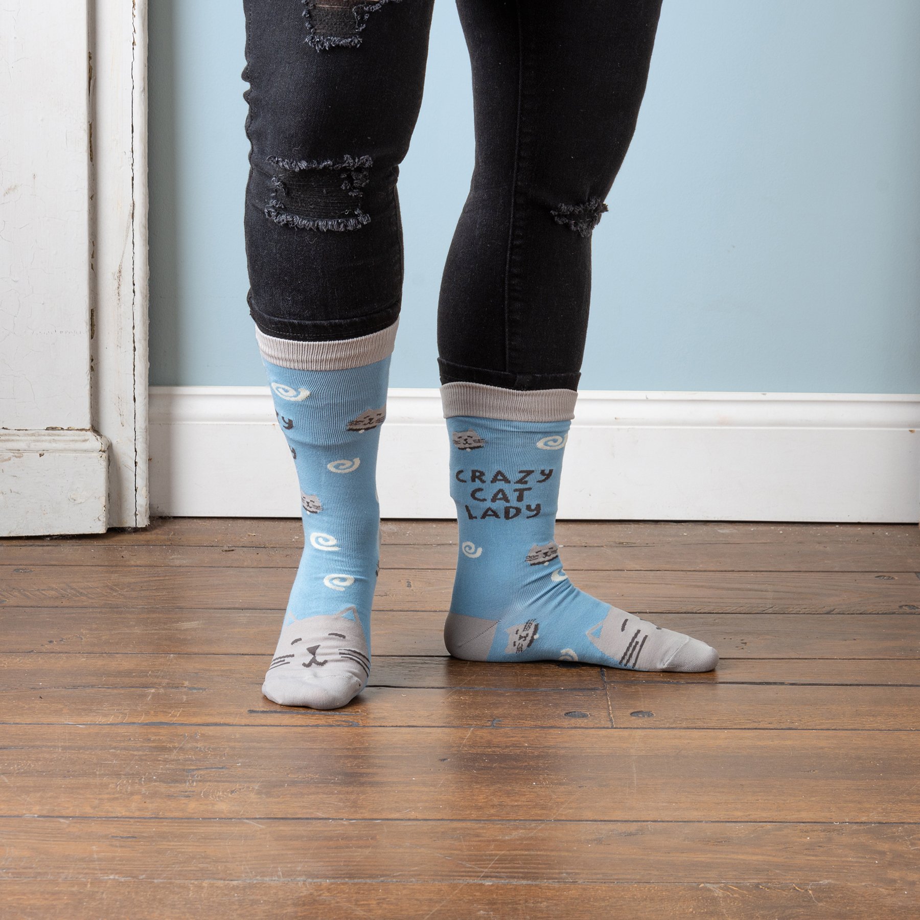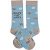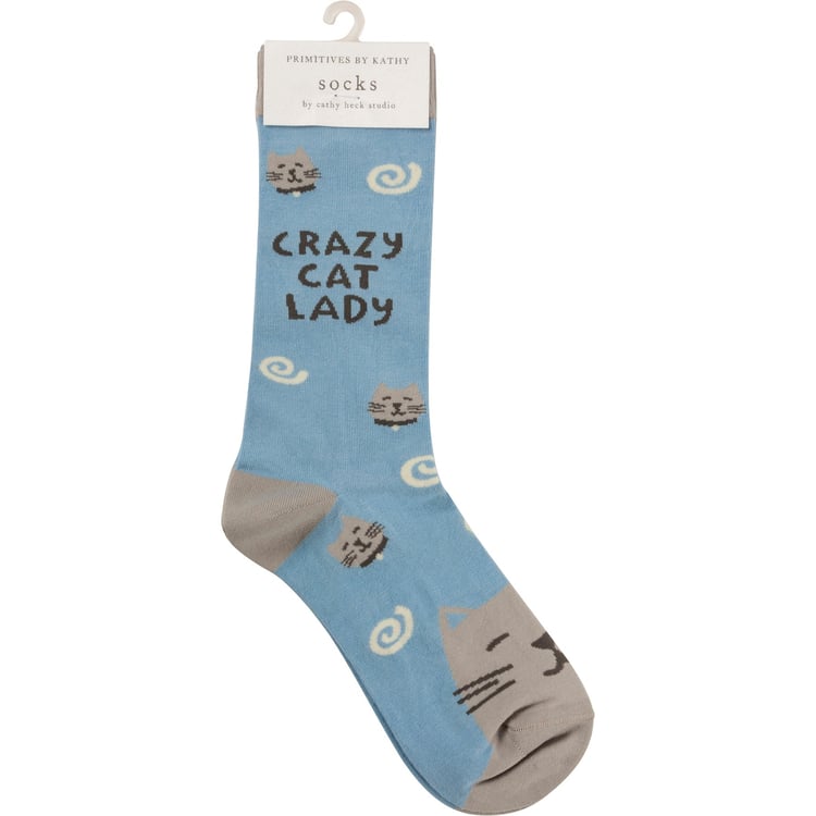 These colorful socks from our best-selling Pet Collection feature woven designs with coordinating "Crazy Cat Lady" sentiment. Cotton, nylon, spandex. Our Cat Lady socks are one size fits most.
