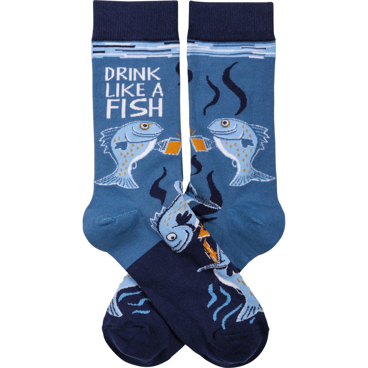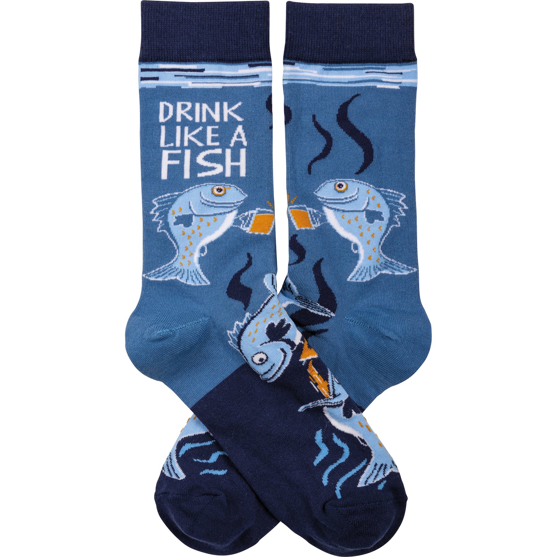 These colorful socks from our LOL Made You Smile Collection feature woven designs with coordinating "Drink Like A Fish" sentiment. Cotton, nylon, spandex. These funny Drink Like A Fish socks are one size fits most.