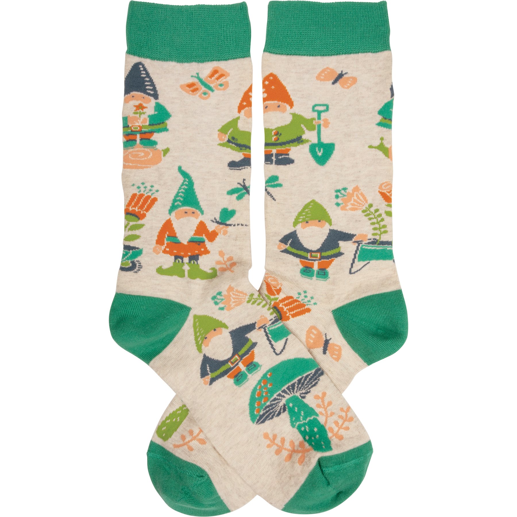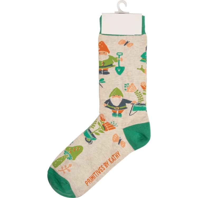 These colorful socks from our Garden Collection feature woven garden gnome designs. Cotton, nylon, spandex. The Garden Gnome socks are one size fits most.