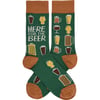 A pair of colorful woven socks from our Grilling & Chilling Collection displaying coordinating beer glass themed designs on each with humorous "Here For The Beer" sentiment. One size fits most design made with cotton, nylon, and spandex. Our Here For The Beer socks come with a header card and a clear plastic hanger for display.