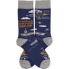 A pair of colorful woven socks from our Military Collection displaying coordinating Navy themed designs on each with "I Love An Awesome Sailor" sentiment. A fun way to show off support for a loved one serving in the military. One size fits most design made with cotton, nylon, and spandex. Our I Love An Awesome Sailor socks come with a header card and a clear plastic hanger for display.