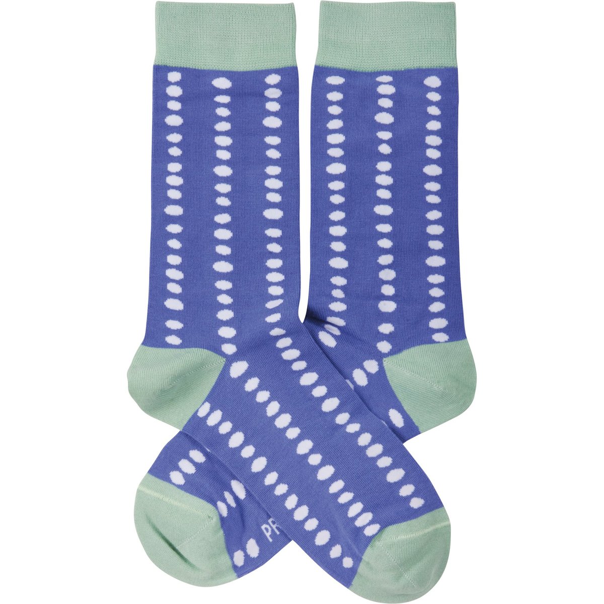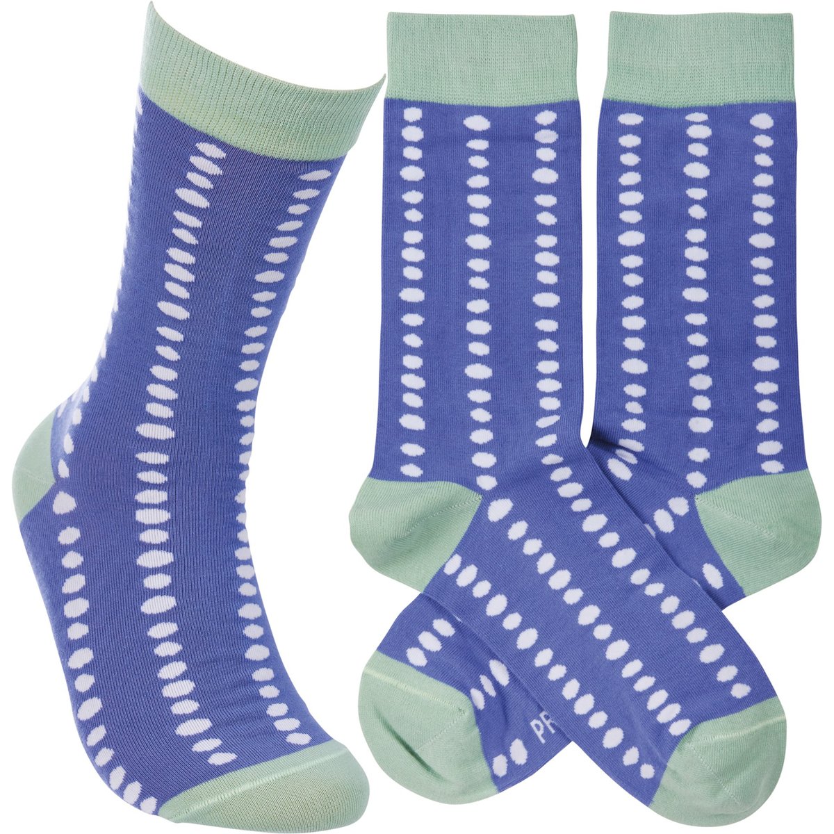 Inspiring calmness, these socks from our Bohemian Collection feature woven design and touches of earthy sage. Made with cotton, nylon, and spandex. Our Inhale Exhale socks are one size fits most. Each pair of socks gets a header card and a clear plastic hanger for display.