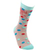 A pair of colorful socks from our LOL-Made You Smile Collection displaying a playful hand illustrated design of confetti with a fun uplifting sentiment that reads "Sprinkle Kindness Like Confetti." These giftable socks are made with a cotton, nylon, and spandex blend for a one size fits most design. Our Spread Kindness Like Confetti socks come with a decorative header card and a clear plastic hanger for easy rack display and gifting. A fun inspirational gift perfect for everyday self-expression.