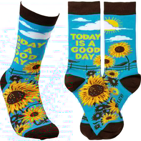 These colorful socks feature woven designs with coordinating "Today Is A Good Day" sentiment. Cotton, nylon, spandex. One size fits most.
