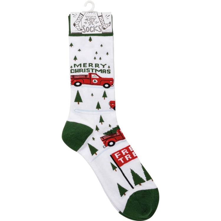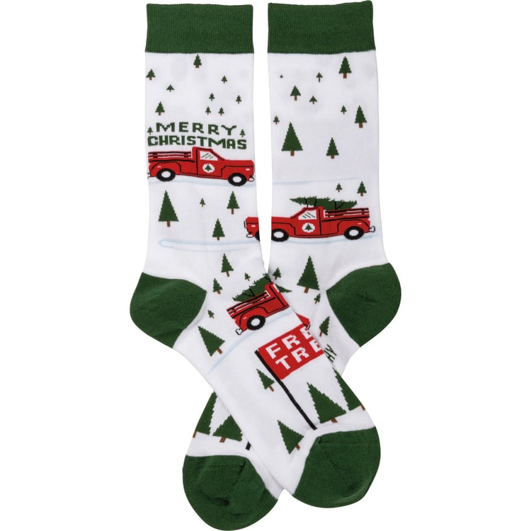 Truck And Tree Merry Christmas Socks