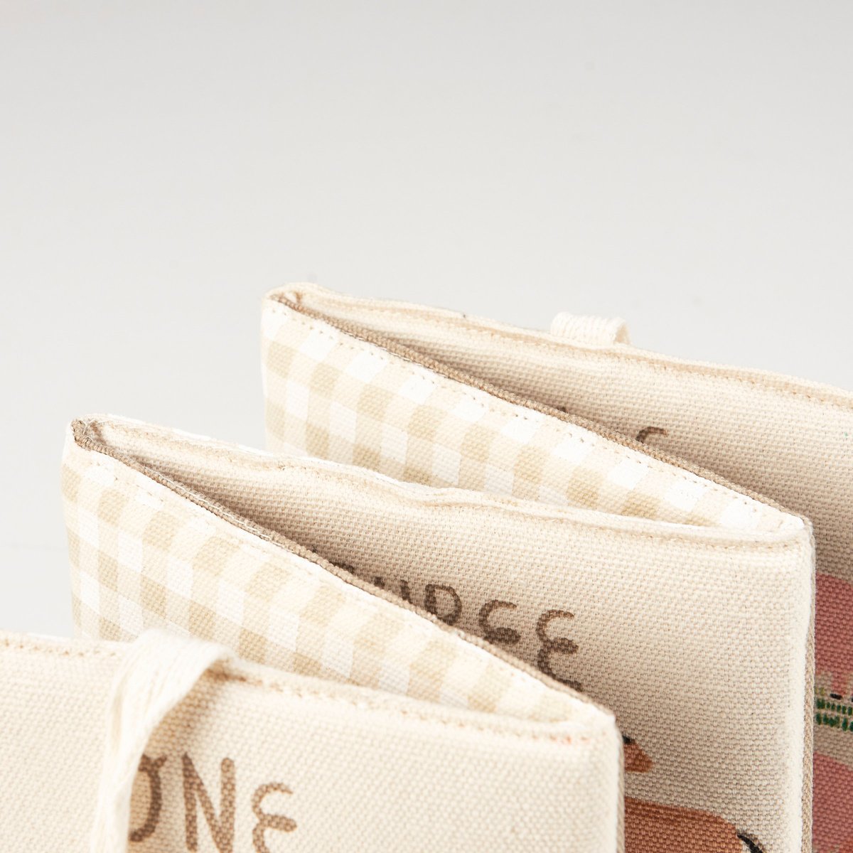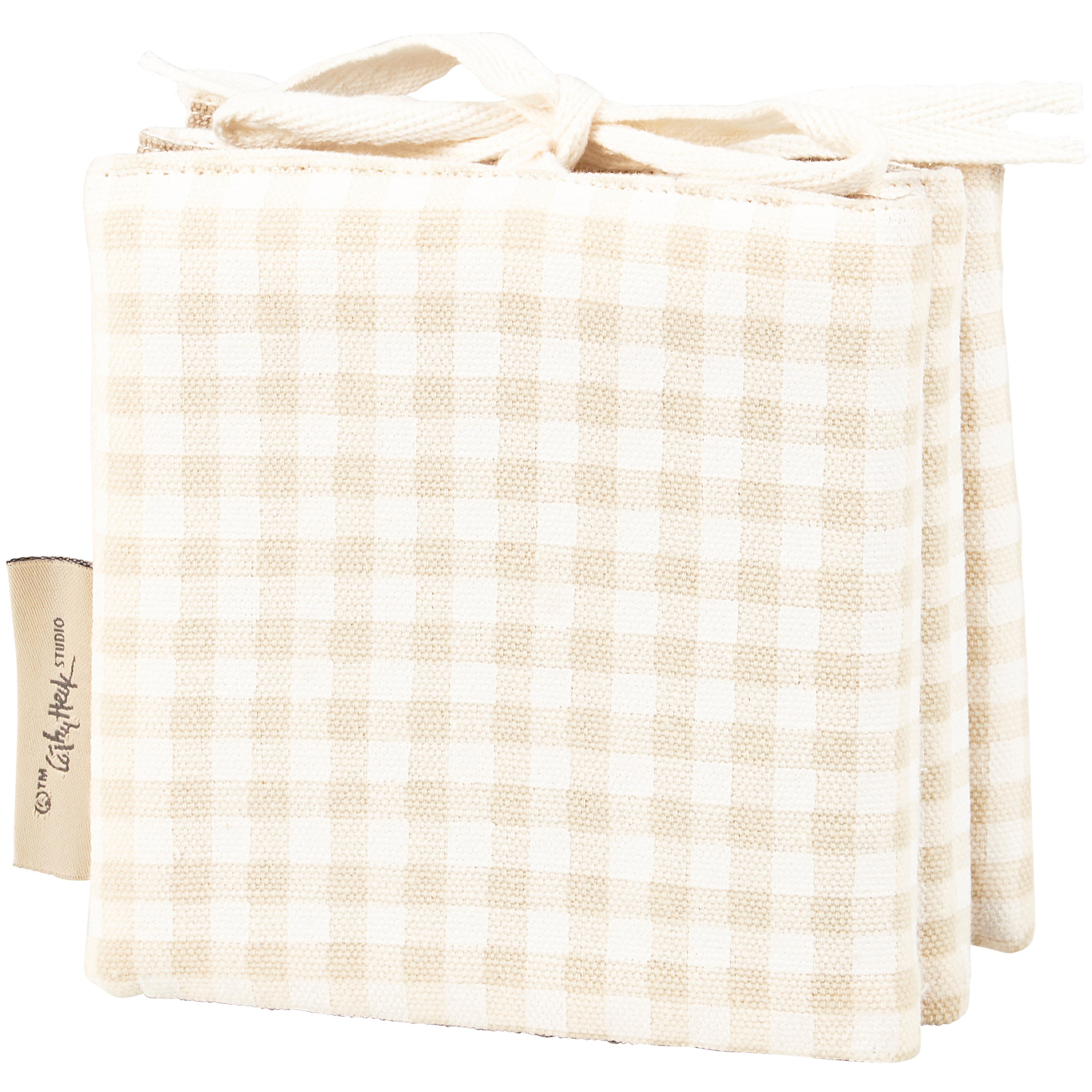 A colorful soft book from our Baby & Kids Collection featuring charming farm inspired designs on each page. Soft book unfolds to reveal five panels with unique block print art designed to introduce counting and a coordinating gingham pattern on the back. Includes fabric straps at the top to tie shut for storage. Our Little Farm soft book is a charming farm-themed gift perfect for infants and kids up to 2 years old.