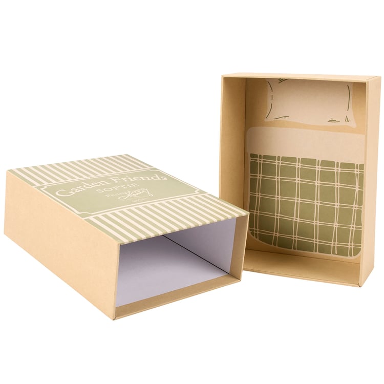 A soft plush toy from our Baby & Kids Collection displaying a charming garden rabbit design with embroidered details and cute accessories. Rabbit design is replicated from original hand painted art inspired by children's storybook illustrations. Kids plush features enough polyester filling for a sturdy design that stands on its own, but still soft enough for play. Our Bunny Rabbit softie is perfect for play with children 3 years or older and looks nice on the shelf as children's room décor when not in use. Softie is packaged in a high-quality kraft box with playful details inside that's great for gifting from shop to shower. A cute garden-themed gift for children's birthdays or everyday moments.
