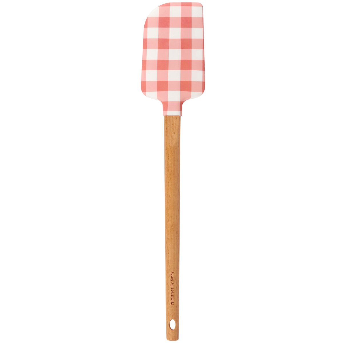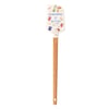 A double-sided silicone spatula from our Homestead Collection displaying hand illustrations of homemade food and ingredients with "Homemade Is Better" sentiment on one side and red gingham pattern on the other side. Our Homemade Is Better spatula includes a coordinating decorative bow and ribbon at the bottom for hanging. Hand-wash recommended; not microwave safe. A fun kitchen accessory perfect for everyday use.