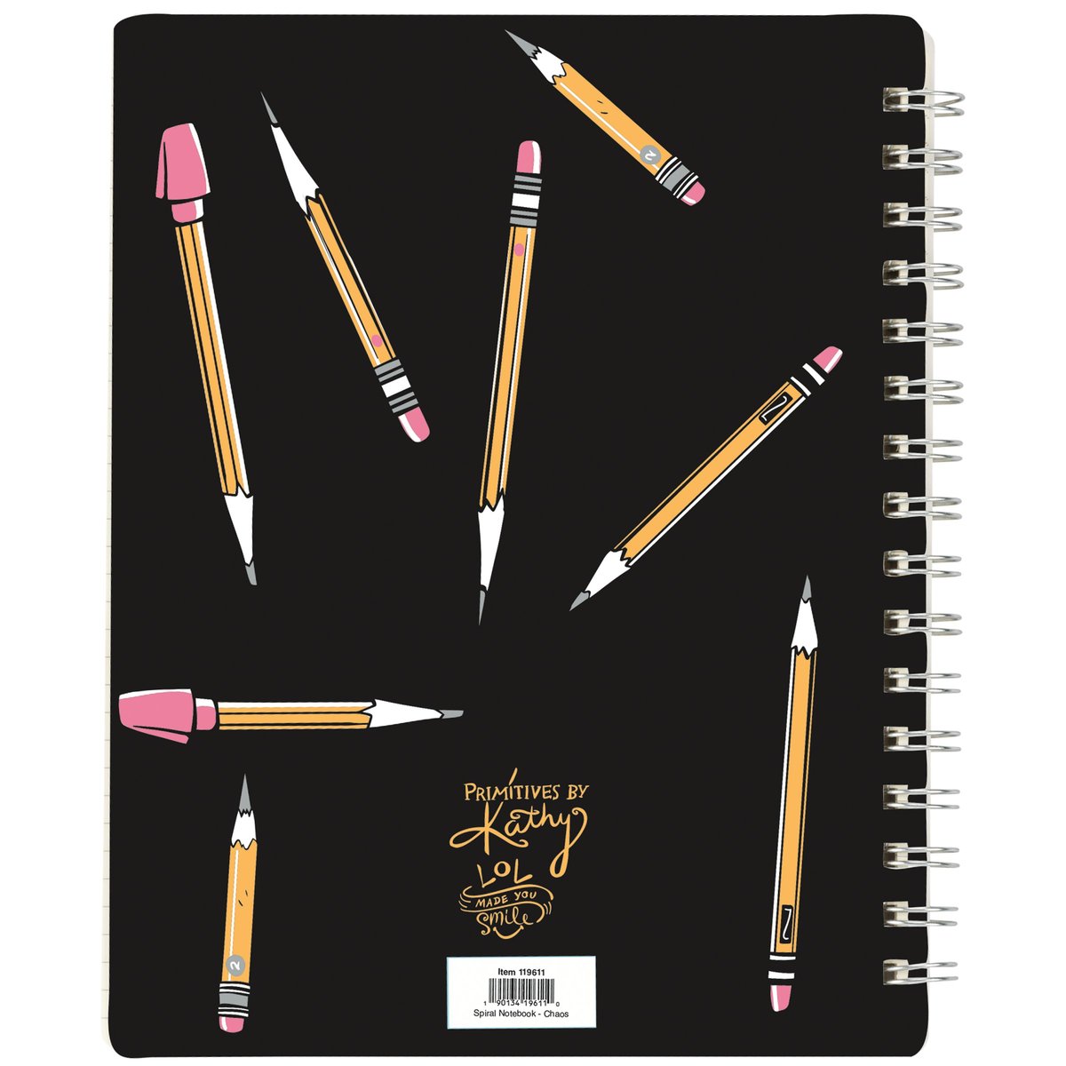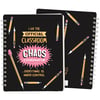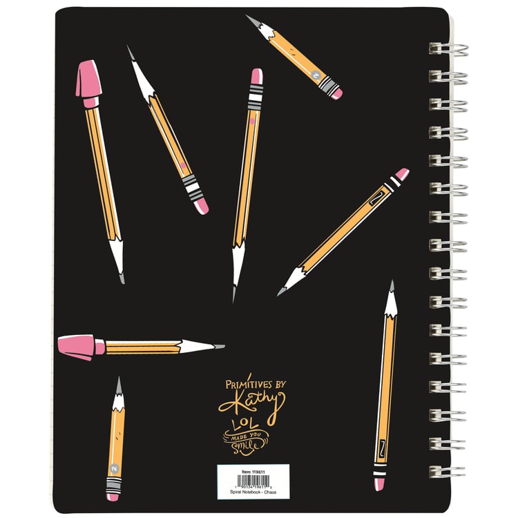A double-sided spiral notebook from our Teacher Collection displaying playful hand illustrated designs of pencils with a fun teacher inspired sentiment that reads "I Am The Official Classroom Chaos Coordinator ...Everything Is Under Control." Back cover features coordinating pencil pattern. Our Classroom Chaos spiral notebook includes 120 lined pages. A fun teacher gift perfect for an everyday accessory.