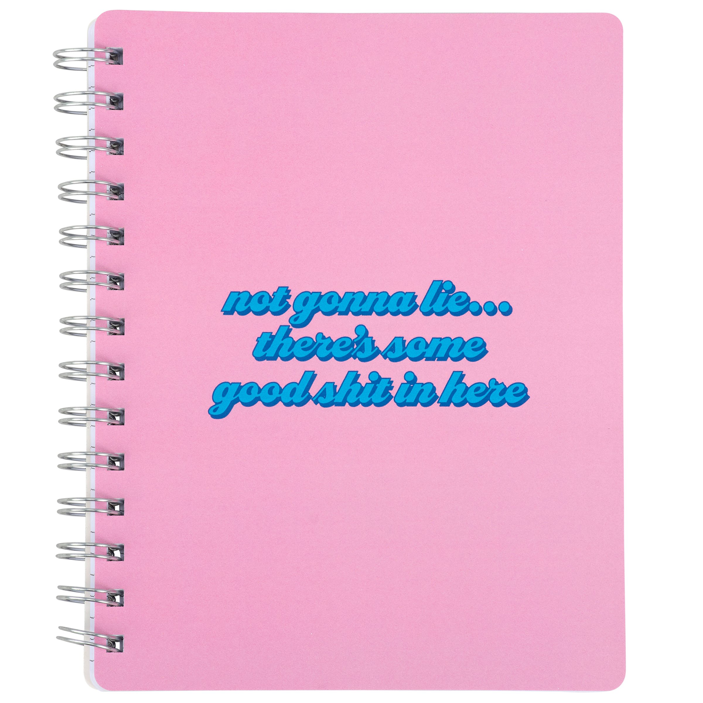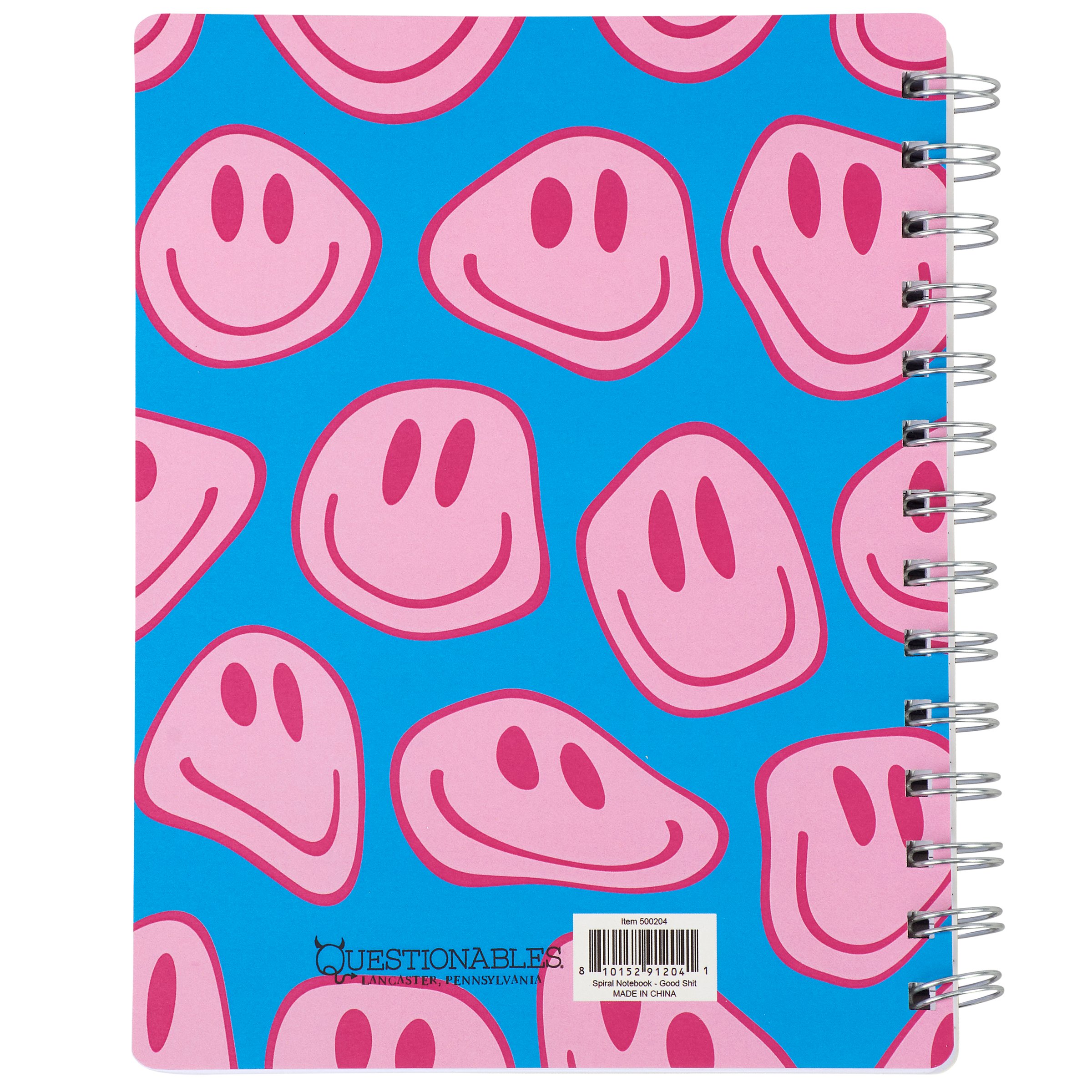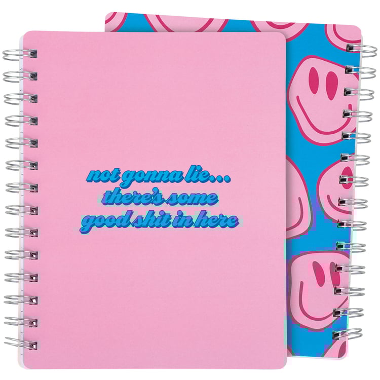 This double-sided spiral notebook displays a sassy sentiment in a fun retro style that reads "Not Gonna Lie... There's Some Good Shit In Here." The back cover of the notebook features a coordinating smiley face pattern to complete the look. Questionables spiral notebooks include 120 lined pages to write or doodle anything desired. Our Good Shit In Here spiral notebook is a fun gift that calls back to a retro style but with modern mentality, perfect for making a statement while getting a giggle out of others.