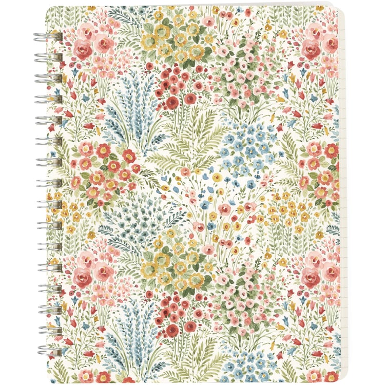A double-sided spiral notebook from our Garden Collection displaying a colorful pattern of mixed florals on both covers. Design is replicated from original art hand painted in a delicate watercolor style. Our Mixed Floral spiral notebook includes 120 lined pages. A charming garden-themed accessory that is also great for gifting.