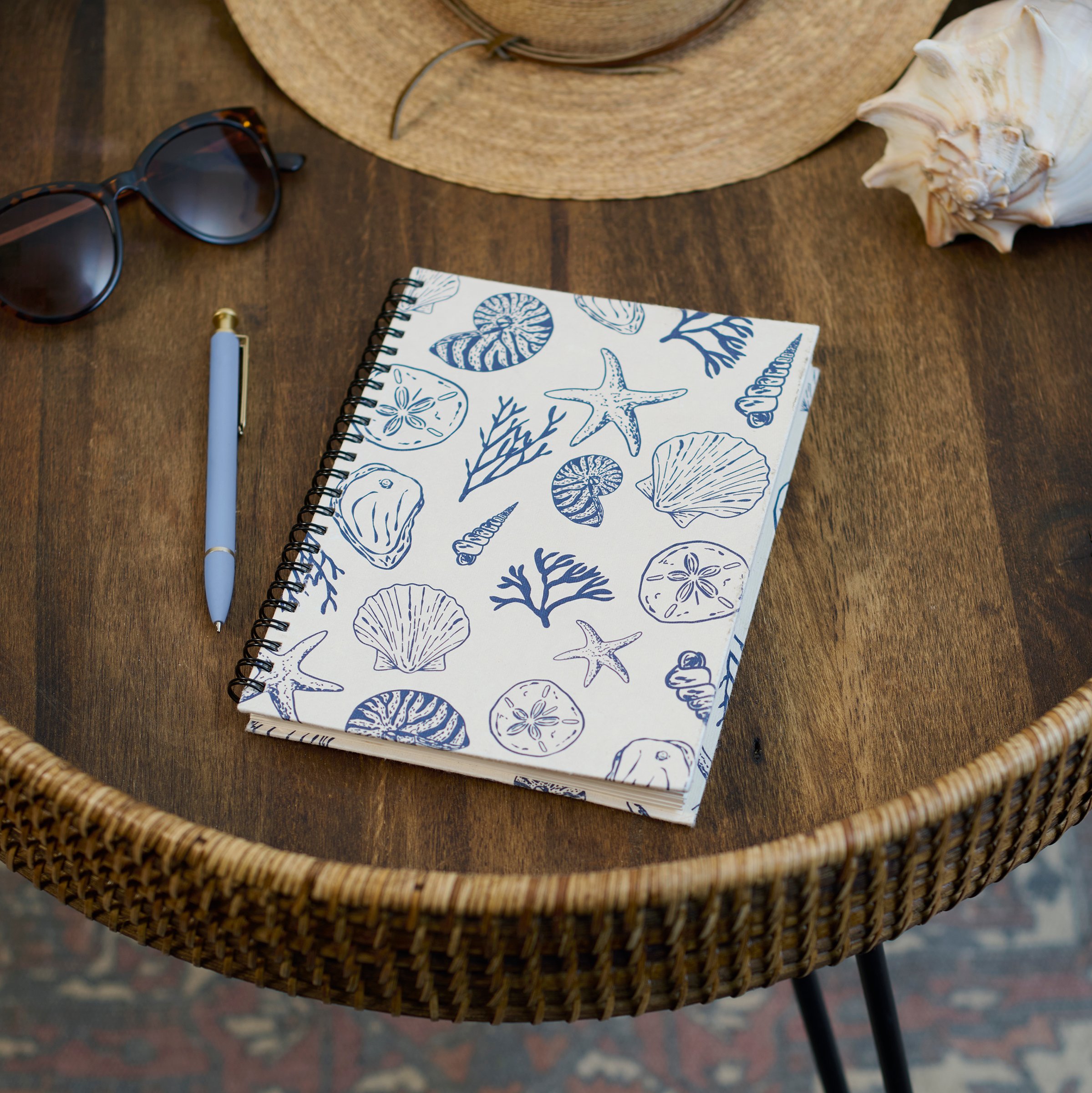 A double-sided spiral notebook from our Beach Collection displaying vintage illustrated designs of various seashells in a coastal inspired color palette on the front and back covers. Our Seashells spiral notebook includes 120 lined pages. A stylish beach themed accessory that is also great for gifting.