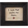A timeless piece of framed stitchery featuring an embroidered "I Love That You're My Mom" sentiment with flower design on a pulled canvas. Complements well with existing decor or coordinating design pieces.