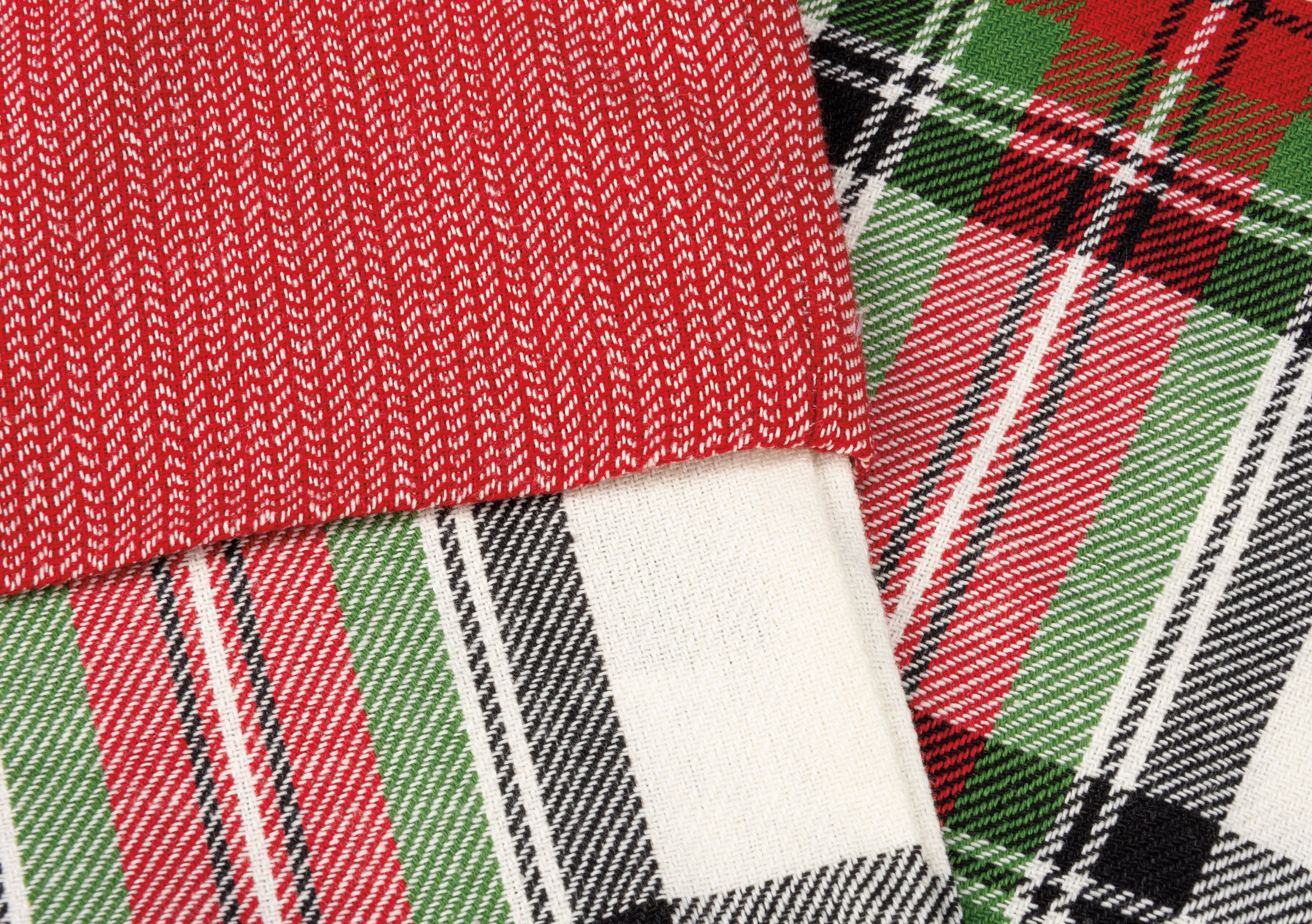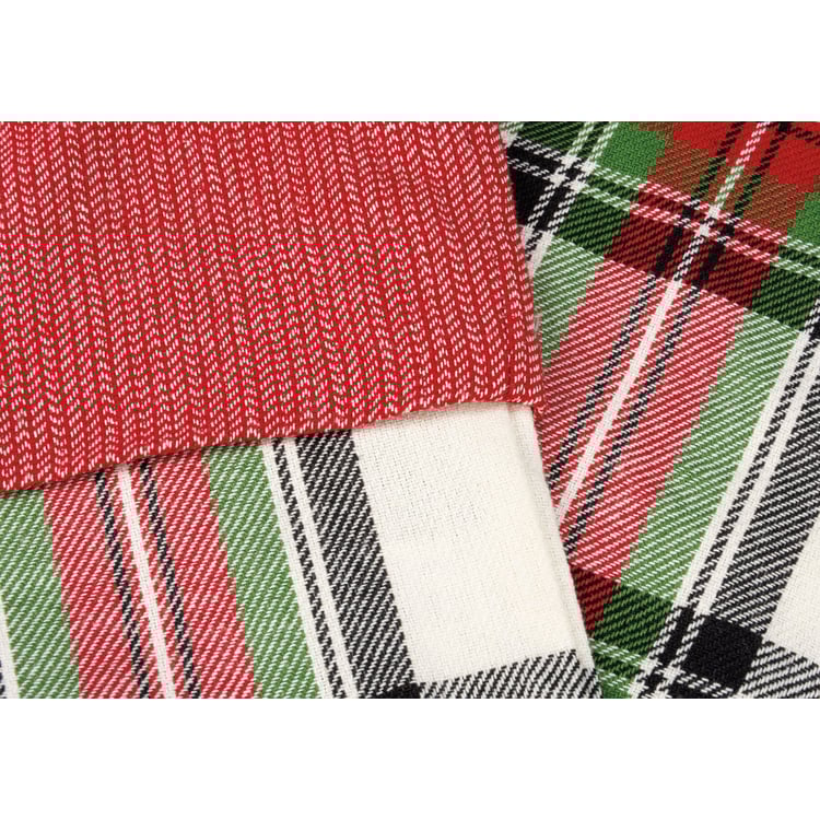 A cotton Christmas stocking from our Christmas Collection featuring a cream holiday plaid pattern with a coordinating herringbone cuff. Our Plaid Christmas Stocking includes a loop for easy hanging.