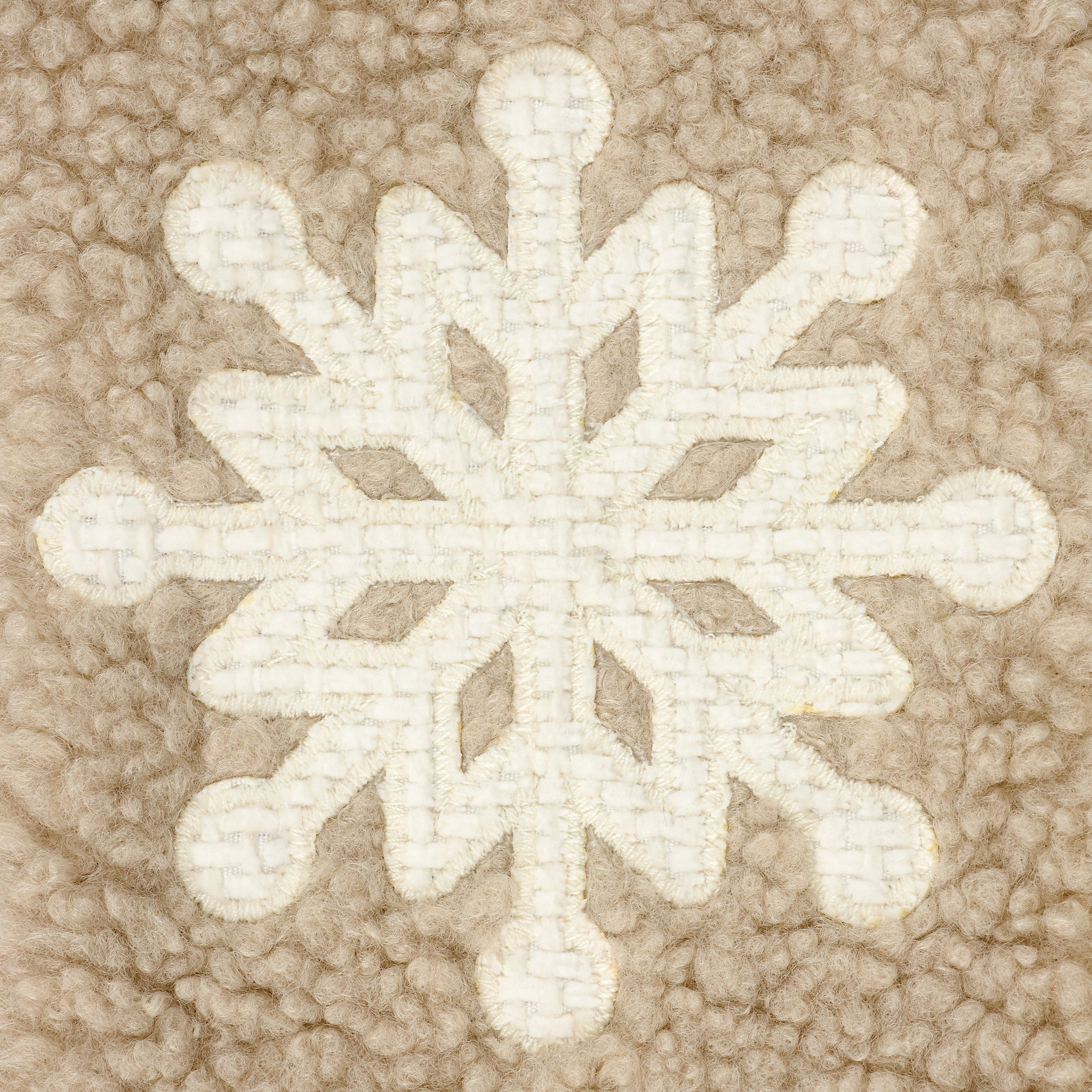 A stocking from our Christmas Collection displaying a embroidered snowflakes on faux sherpa in a neutral color palette that coordinates well with a variety of seasonal styles. Our Faux Sherpa Snowflake stocking is ready to hang via the loop attached to the top. A neutral Christmas home accent perfect for seasonal decorating and holiday gifting.