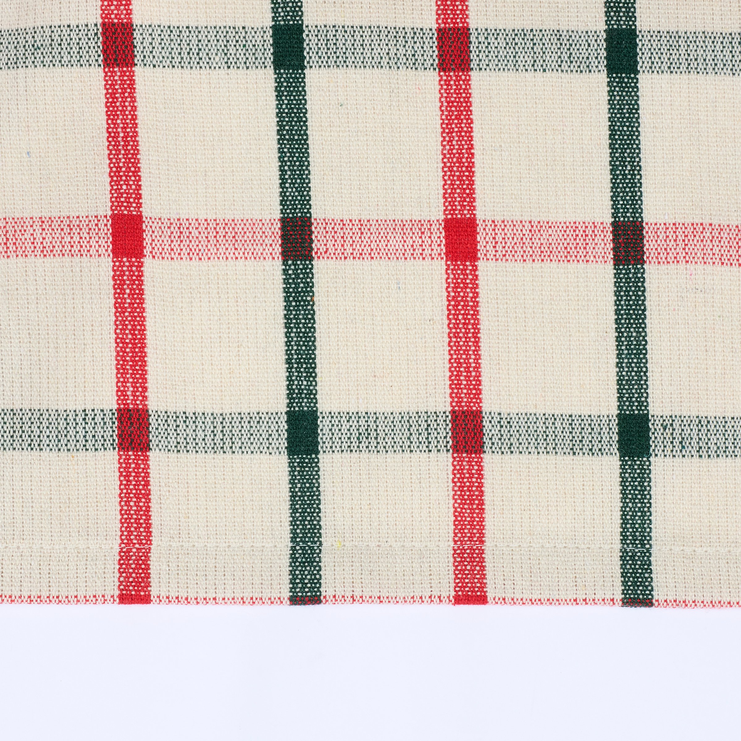 A cotton tablecloth from our Christmas Collection displaying a holiday red and green check pattern. This Christmas tablecloth can be used as table décor or as an accent to a seasonal home décor display and features a size of 52 inches by 52 inches for plenty of coverage. Our Christmas Check tablecloth is conveniently machine-washable for easy cleaning. A rustic Christmas home accent with a variety of display options.