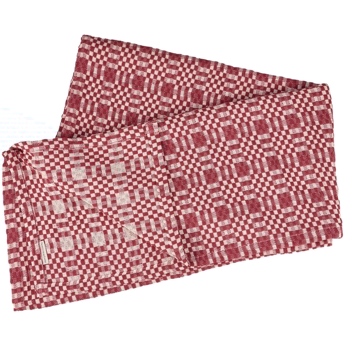 A cotton tablecloth from our Primitive Collection displaying a checkered pattern in red and cream. Our Red Check tablecloth is conveniently machine-washable for easy cleaning. Measures 52 by 52 inches of length for plenty of coverage.