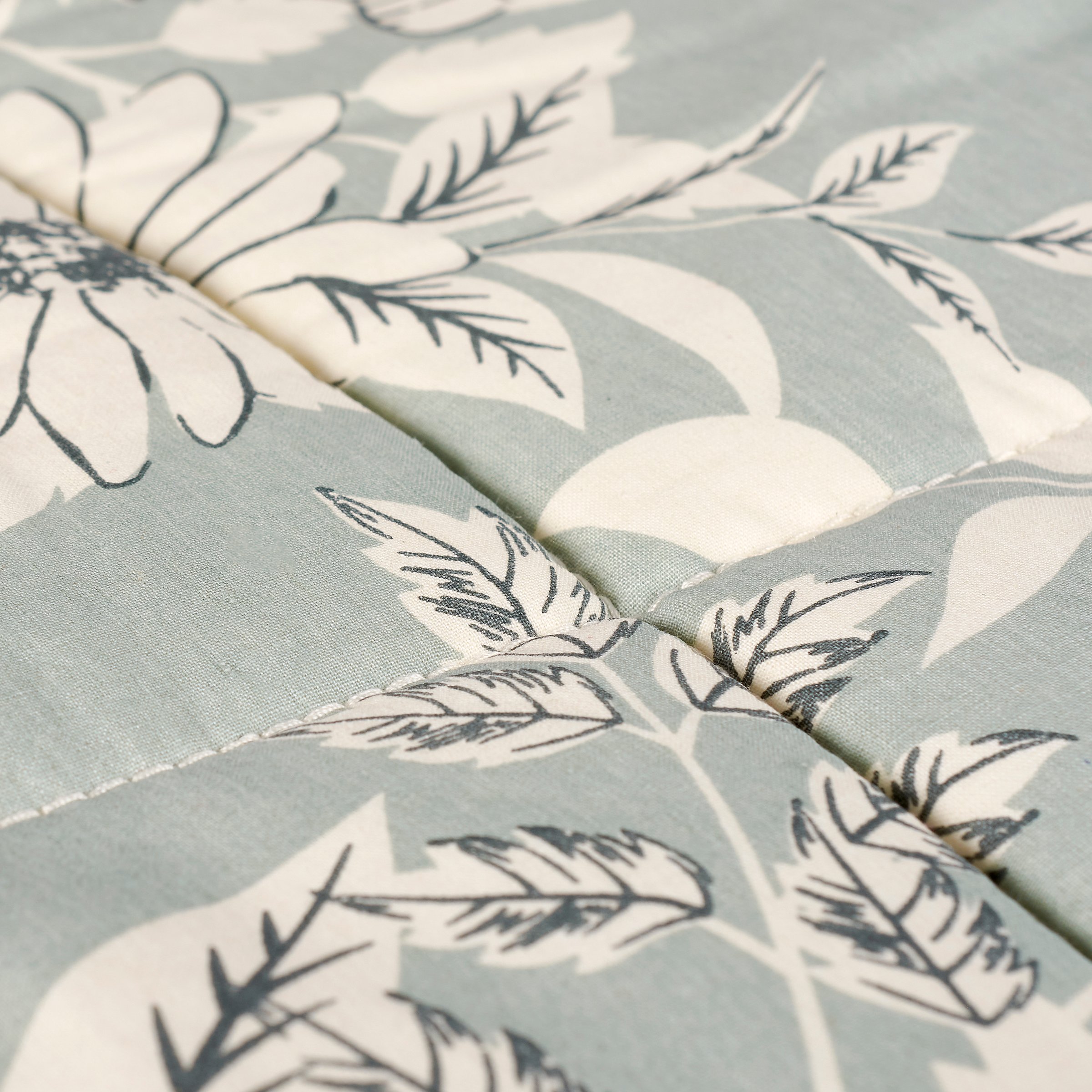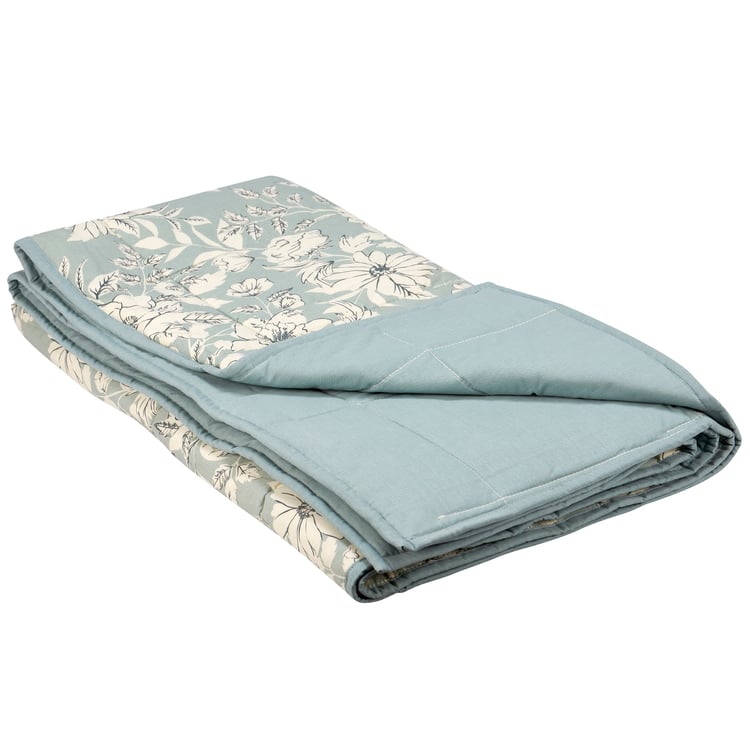 A cotton throw blanket from our Botanical Collection displaying a vintage floral pattern in a blue color palette with quilted details for added texture. Floral throw blanket measures 50 x 60 inches giving plenty of coverage to accent furniture or to cozy up under the blanket. Our Blue Floral throw blanket is conveniently machine-washable for easy cleaning. A floral-themed home accent perfect for adding vintage style to any room.