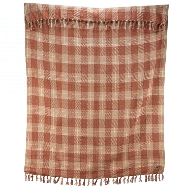 A cotton throw blanket from our Plaid Collection displaying a brown tartan design inspired by old world décor with tassels on top and bottom edge. Rustic throw blanket measures 50 x 60 inches giving plenty of coverage to accent furniture or to cozy up under the blanket. Our Brown Tartan throw blanket is conveniently machine-washable for easy cleaning. A rustic home accent perfect for everyday use.