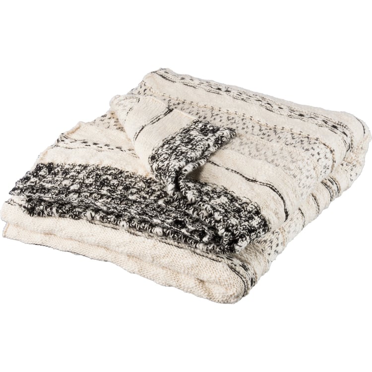 Inspired by the Danish lifestyle trend Hygge - "a cozy happy life" - this blanket lends thick and super soft hand knit cotton with multi black and gray stripe designs.