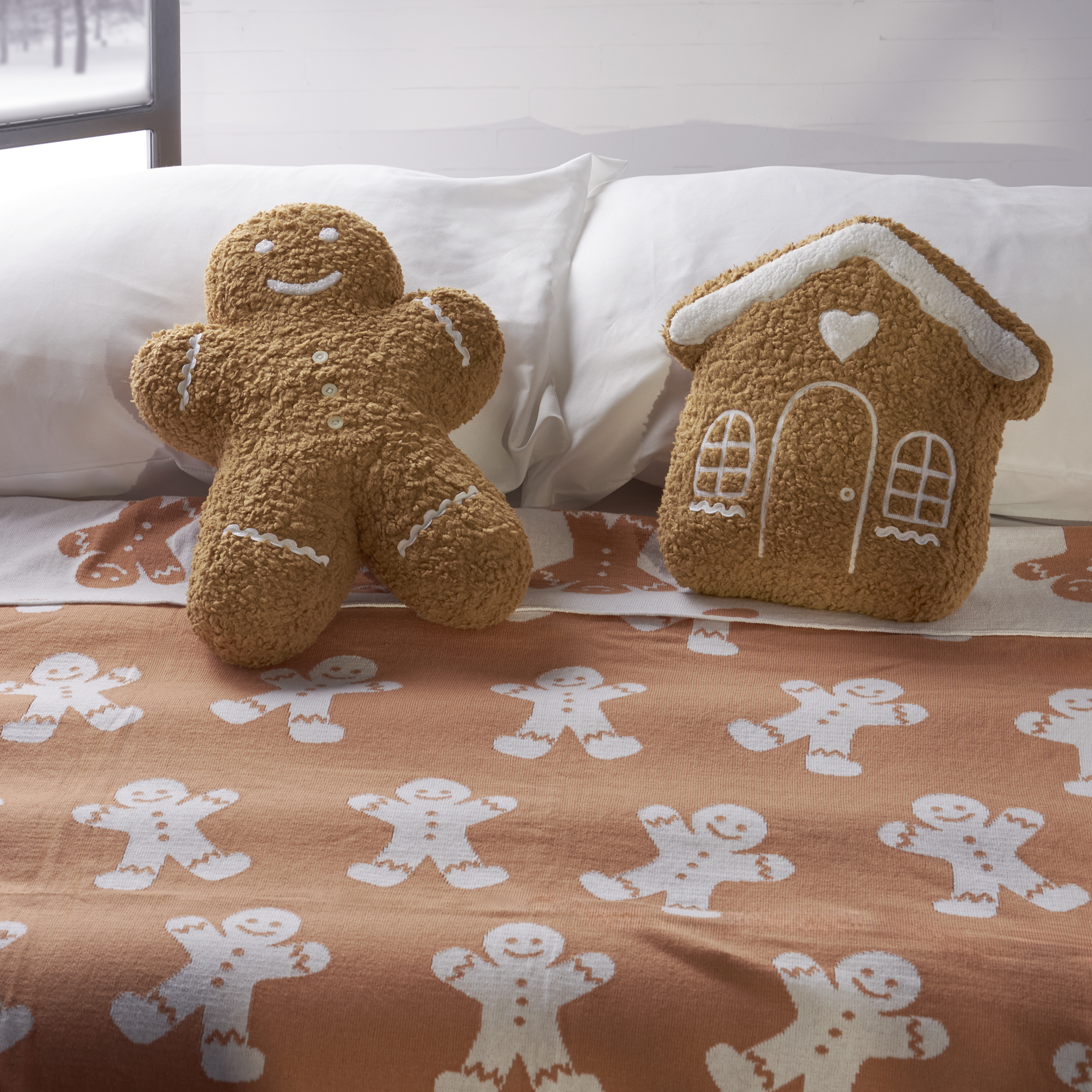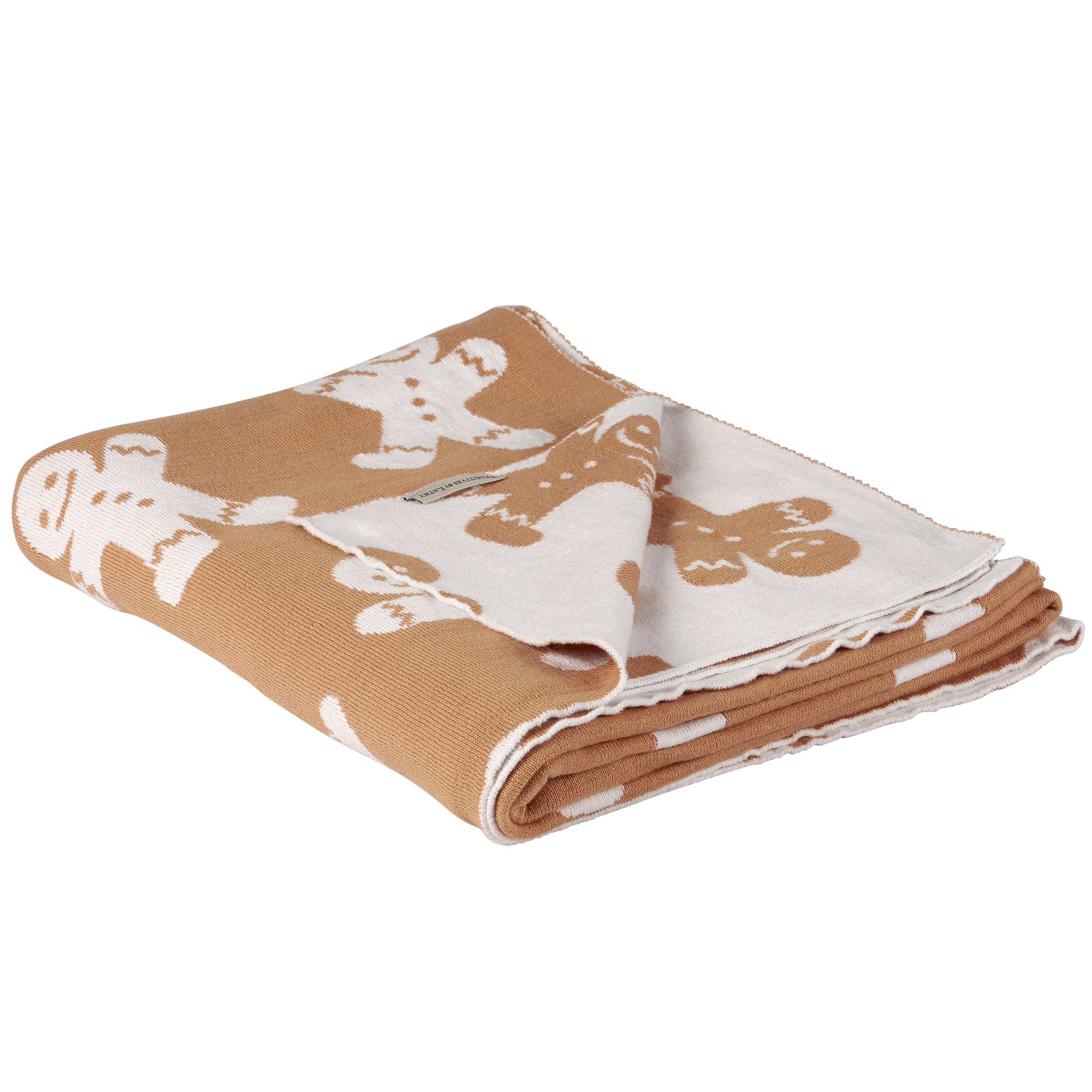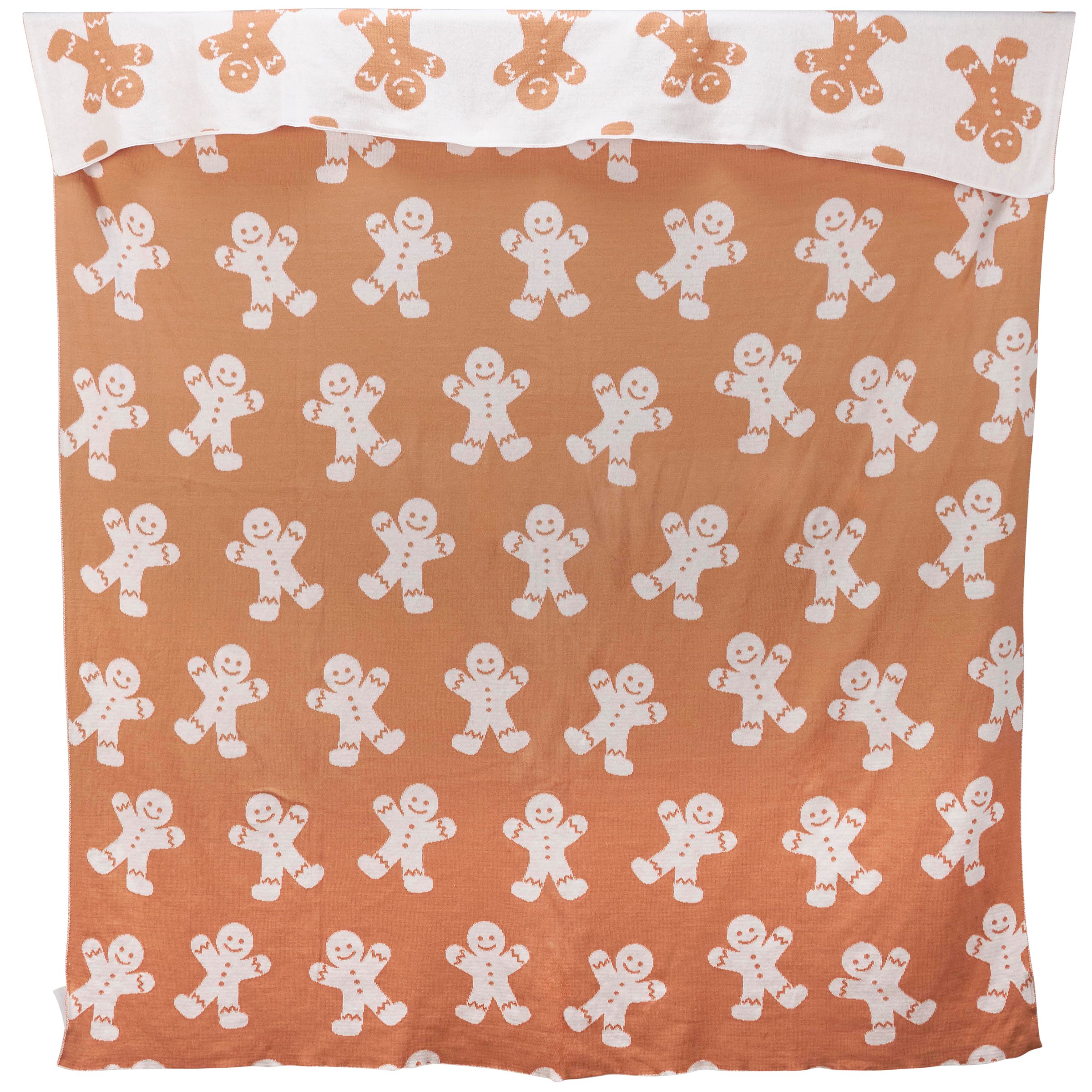 A cotton throw blanket from our Christmas Collection displaying a fun pattern of happy gingerbread men made with a jacquard knit to create a reversible design. Seasonal throw blanket measures 50 x 60 inches giving plenty of coverage to accent furniture or to cozy up under the blanket. Our Gingerbread Man blanket is conveniently machine-washable for easy cleaning. A fun gingerbread-themed gift perfect for seasonal display.