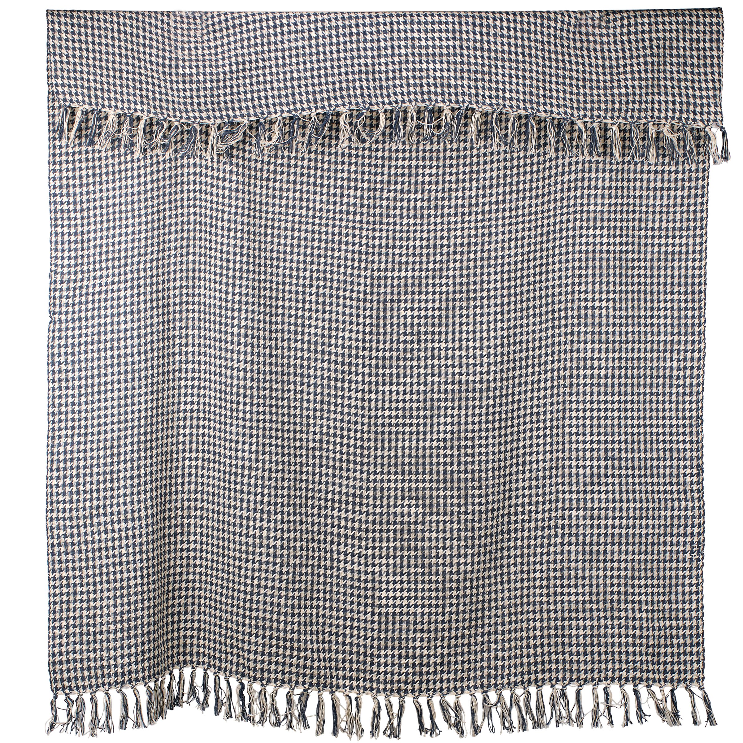 A cotton throw blanket from our Cottage Charm Collection displaying a black houndstooth pattern woven throughout with coordinating tassels on the top and bottom edge. Vintage throw blanket measures 50 x 60 inches giving plenty of coverage to accent furniture or to cozy up under the blanket. Our Houndstooth throw blanket is conveniently machine-washable for easy cleaning. A vintage home accent perfect for adding cottage style to any room.