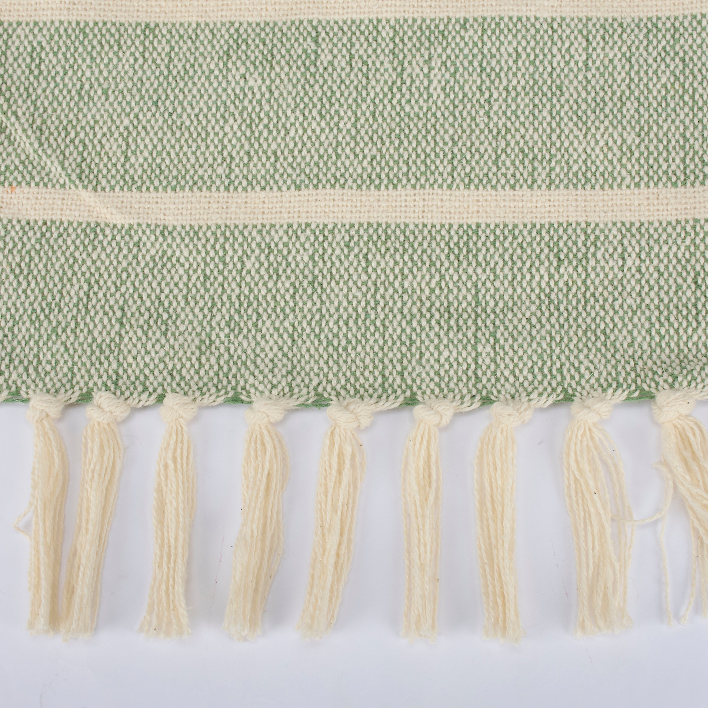 A cotton throw blanket from our Cottage Charm Collection displaying a sage green stripe pattern inspired by vintage cottage decor. Vintage throw blanket measures 50 x 60 inches giving plenty of coverage to accent furniture or to cozy up under the blanket. Our Sage Stripe throw blanket is conveniently machine-washable for easy cleaning. A vintage home accent perfect for adding cottage style to any room.