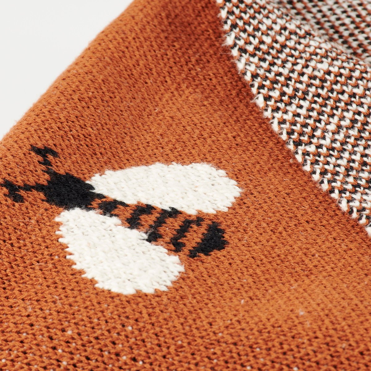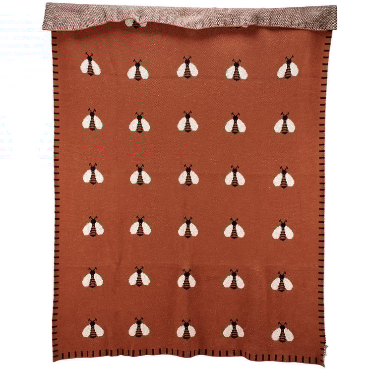 A knitted cotton throw blanket from our Garden Collection displaying a fun pattern of bees. Our Bee throw blanket is machine-washable for convenient cleaning. Throw blanket measures 50 inches by 60 inches for plenty of cozy coverage. A bee-themed everyday home accent perfect for any room.