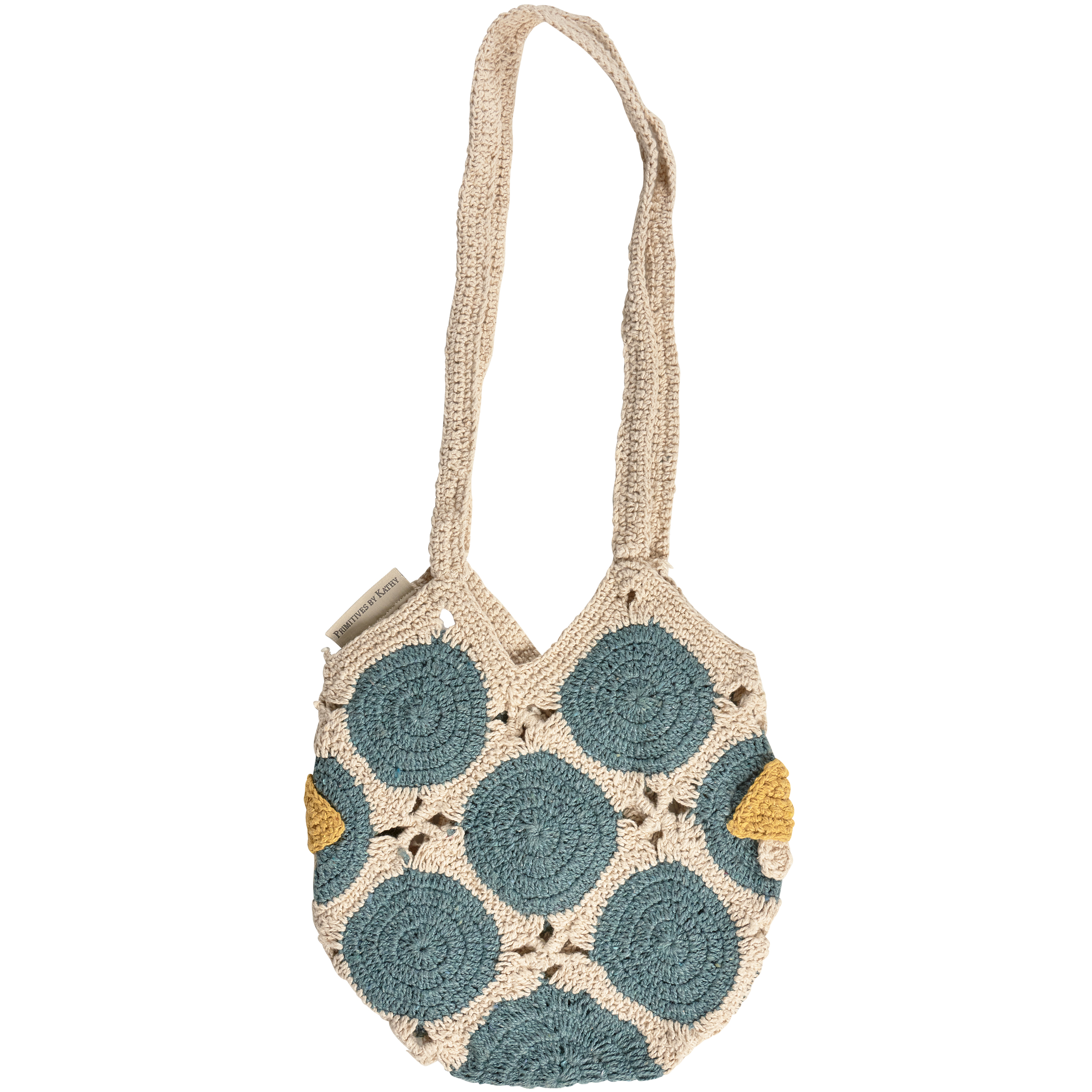 A cotton tote bag from our Cottagecore Collection displaying nature inspired designs of mushrooms. Tote bag features a unique crochet style for the handle and bag design. Handles features an 11 inch drop. Our Crochet Mushroom tote includes a 10 inch by 12 inch pouch perfect for storing everyday items when on the go. Spot clean only. A stylish nature-themed accessory great for gifting.