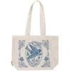 A double-sided cotton tote from our Folk Art Collection displaying a calming hand illustrated design of a peace dove and complementing florals. Design is replicated from original hand illustrations inspired by Scandinavian folk art. Our Peace Dove tote bag includes 13 inch straps for easy carrying. An inspirational accessory perfect for shopping and daily activities.
