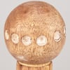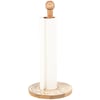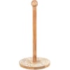A wooden towel holder from our Home Collection displaying a medallion inspired design on the base. Design features natural wood with debossed details and accented with cream color. Our Medallion towel holder is easy to use by slipping paper towel rolls on and off center pole. A neutral tabletop accessory that coordinates with a variety of styles.