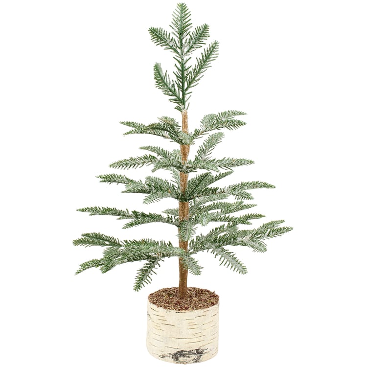 A large decorative tree from our Christmas Collection displaying a natural pine tree design with a mica coating on the branches for a frosty finish. Our large Icy Pine tree stands 15.75 inches tall and is attached to a faux tree trunk base designed to free stand on a flat surface for easy display. A faux tree perfect for displaying as natural home decor or as a miniature Christmas tree with ornaments.