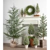 A standing bristle tree featuring flocked accents for a snowy effect. 72" tall with a burlap covered base.