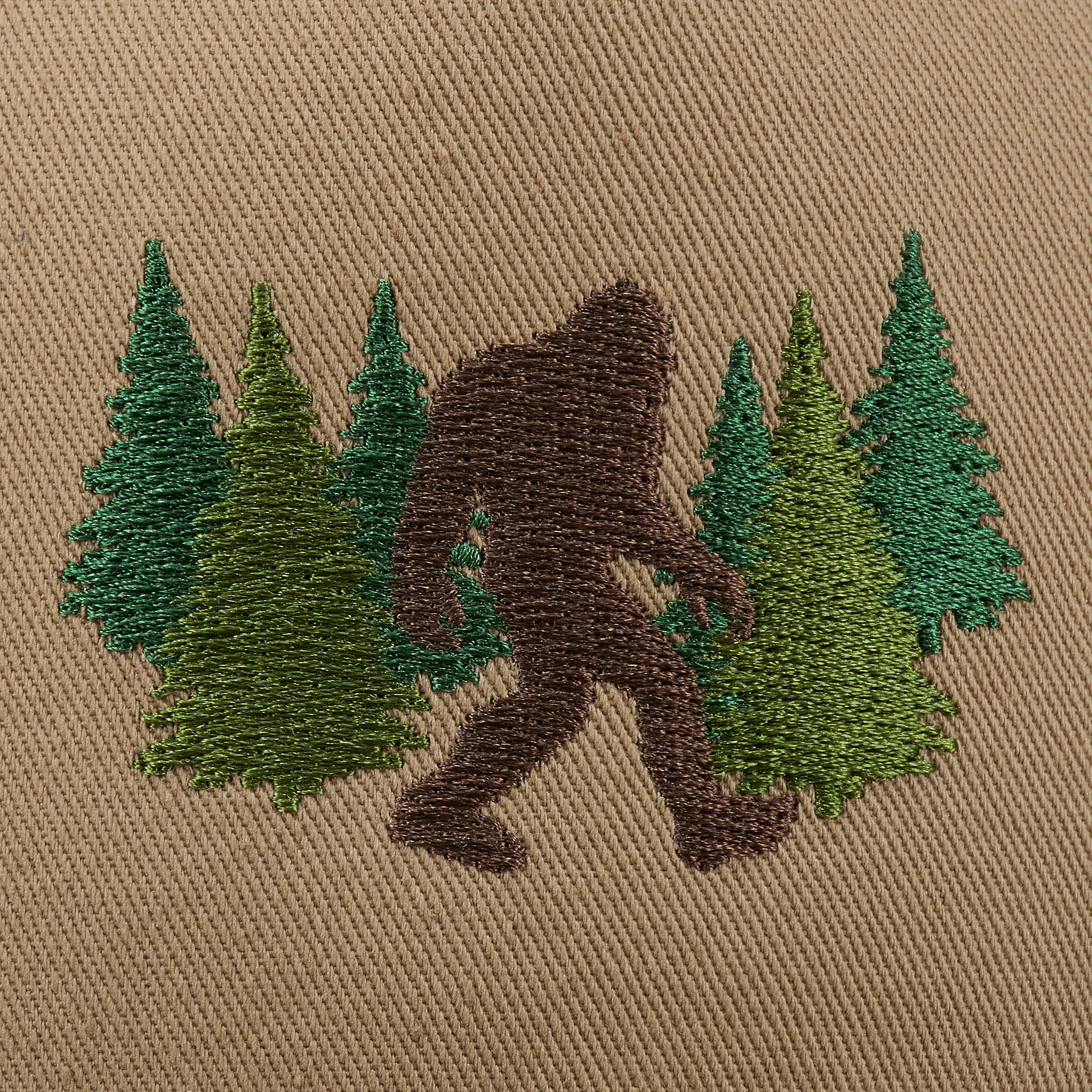 A cotton trucker hat from our Lake & Cabin Collection featuring an earthy color palette and detailed embroidered design displaying bigfoot and trees. Our Bigfoot trucker hat is one size fits most with an adjustable snap closure to create the perfect fit and full mesh back for comfort and breathability in hot weather. Hand wash only. A fun outdoor accessory great for gifting bigfoot believers.