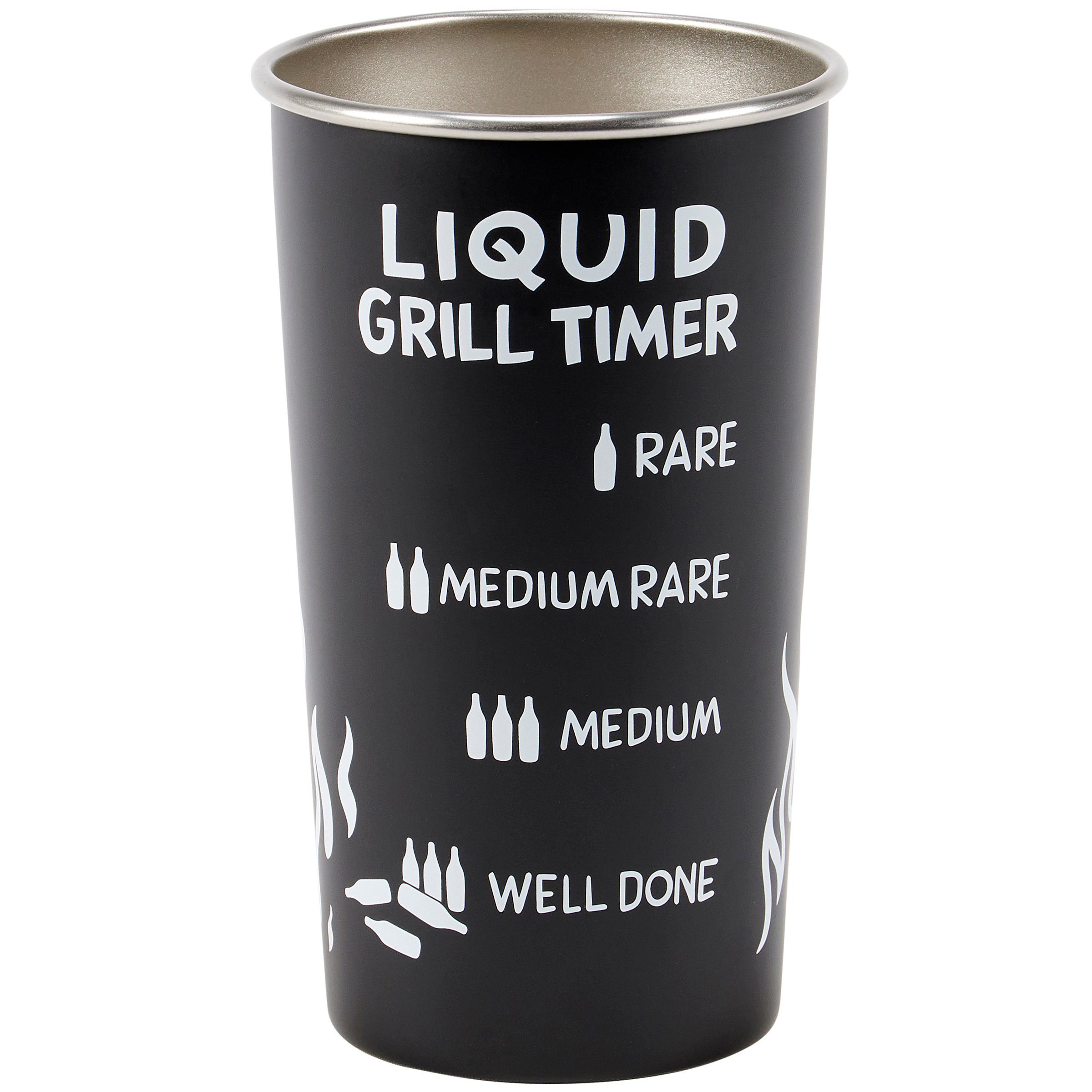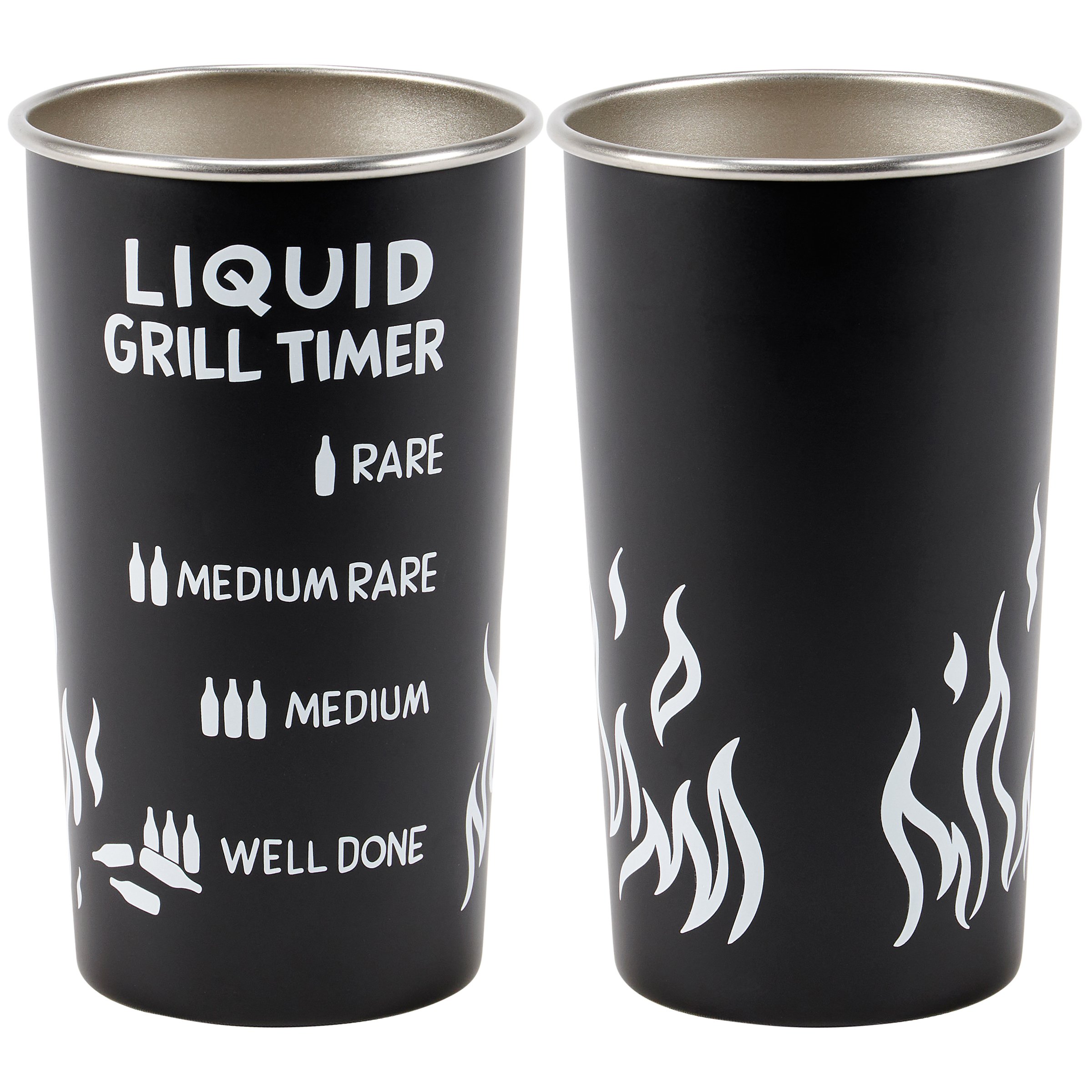 A stainless steel drink tumbler from our LOL-Made You Smile Collection displaying a fun grilling inspired design replicated from original hand illustrated art. Funny tumbler design features a "Liquid Grill Timer" sentiment and markers for how well-done the food will be based on the number of drinks they have. Our Grill Timer steel tumbler holds up to 22 oz. Hand-wash only. A fun grilling-themed gift perfect for outdoor drinkware.