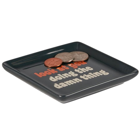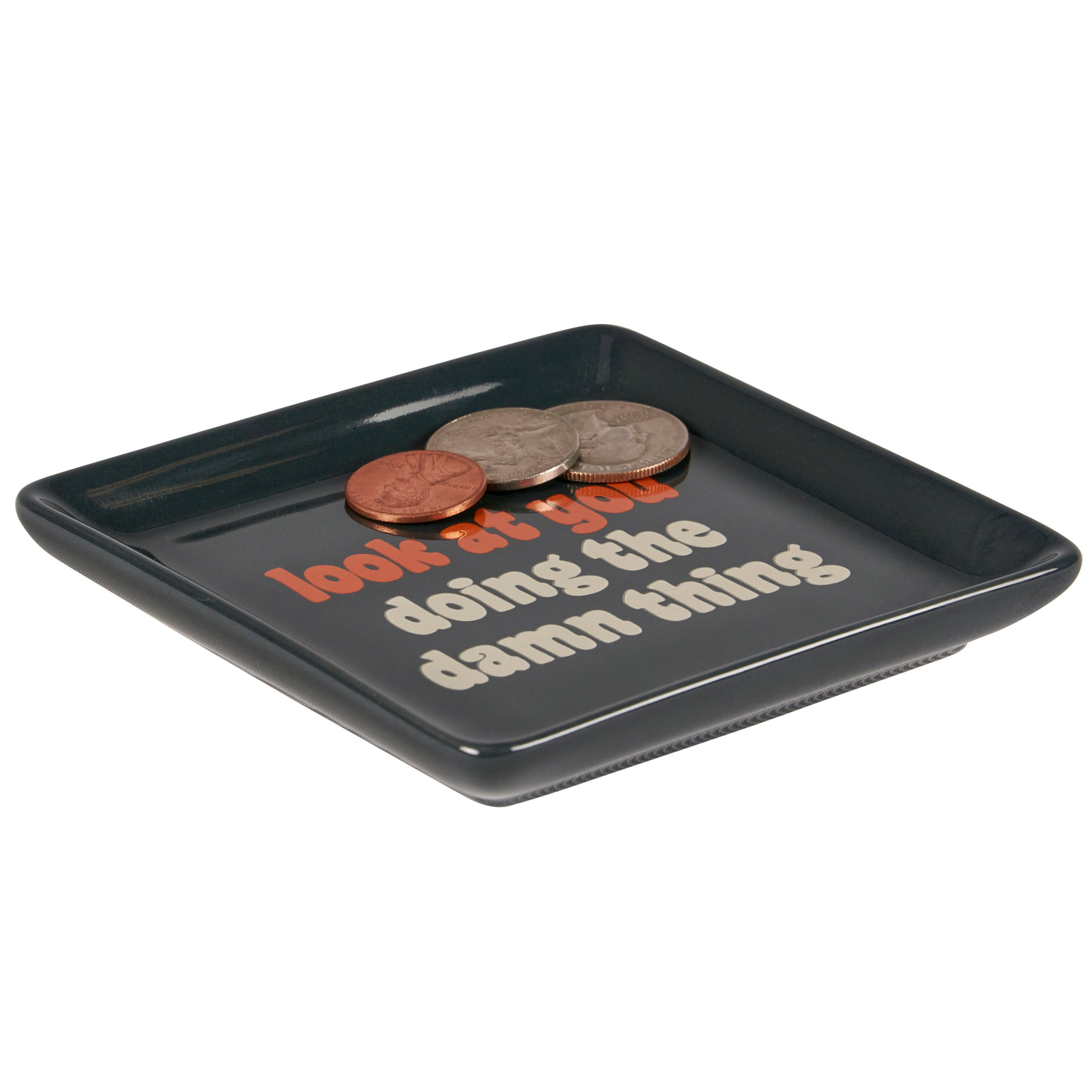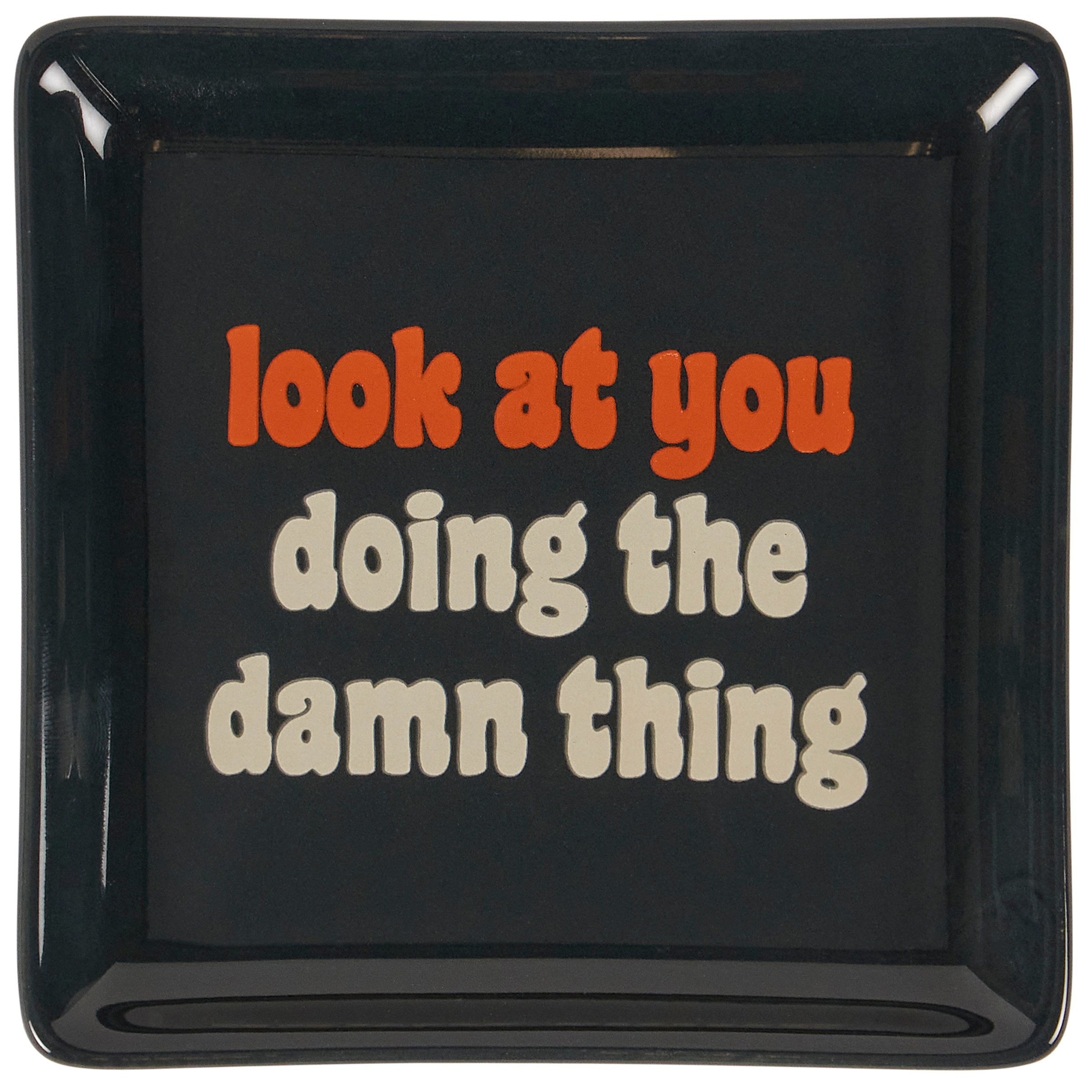 Starting the day can be brutal, but sometimes all you need is some encouraging words to get through the front door with confidence. This durable stoneware vanity tray displays a sassy motivational sentiment that reads "Look At You Doing The Damn Thing" in a retro style perfect for holding daily items and ensuring a morale boost every day. Accessories pictured not included. Our Look At You vanity tray calls back to a retro style while also calling out a modern mentality, great for everyday expression or gifting.
